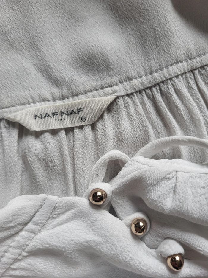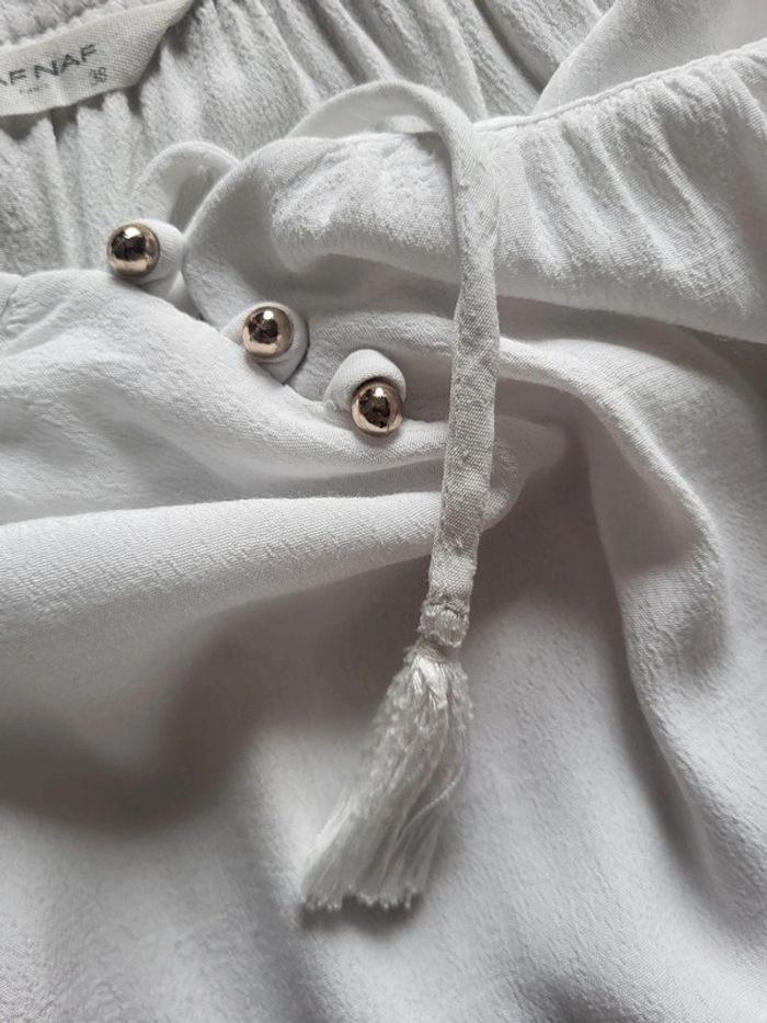Blouse blanche Naf Naf - liens pompons et boutons dorés - photo numéro 11