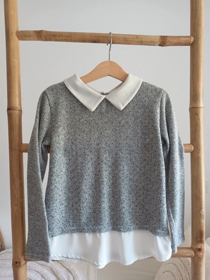 Pull gris avec col blanc 8 ans #kamilyam8ansfille Une petite tâche au dos visible en photo