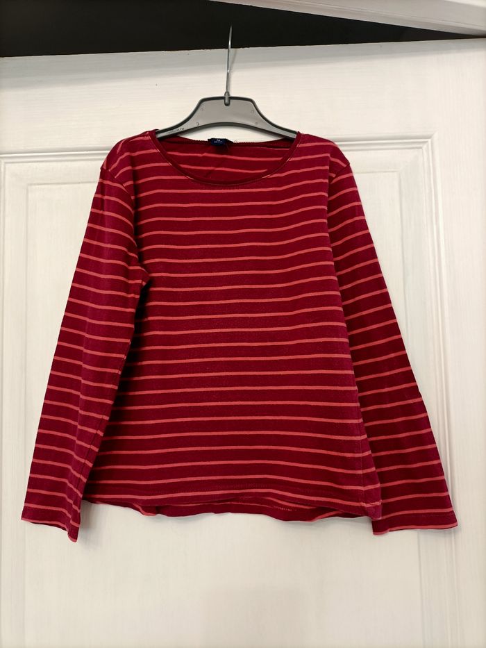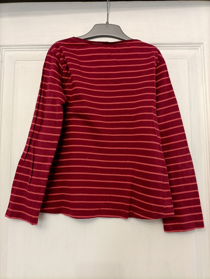 T-shirt à manches longues marinière, rose foncé et rose clair, taille 5 ans. 1€