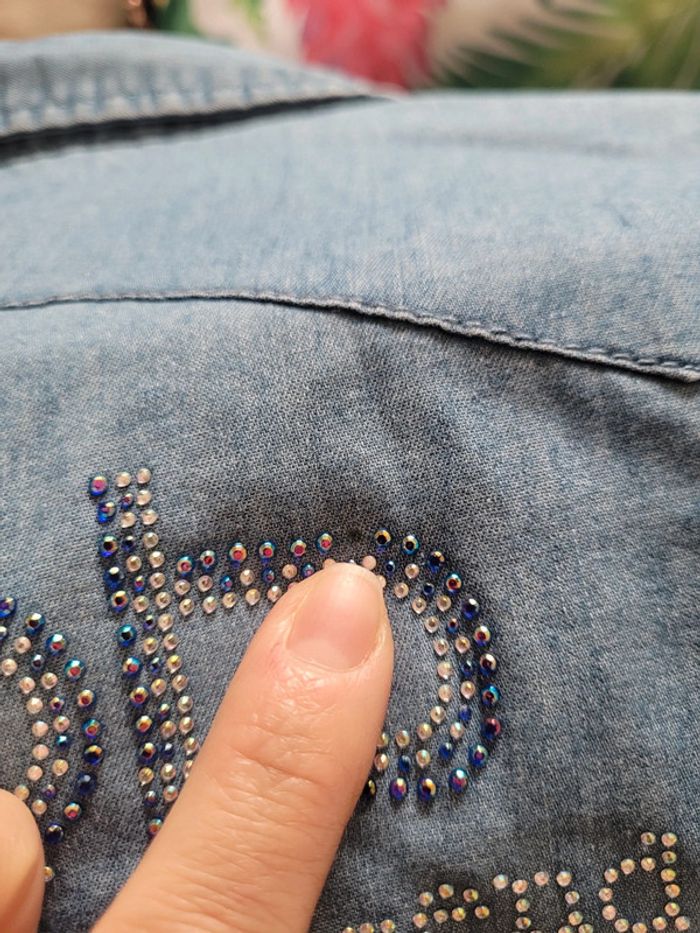 ⚠️⚠️ Pas d'envoi par Vinted go ⚠️⚠️ ⬇️ Chemise en jean de marque Les petites Bombes. Taille L. Très bon état mais manque 1 strass ( merci de bien regarder la dernière photo avant achat pour éviter les déconvenues) 📍Envoi par Mondial relay en 24h Nombreux d'autres vêtements disponibles, n'hésitez pas à jeter un coup d'oeil à mon dressing ou servez vous du hashtag suivant sans filtres: #morgane3007femme40