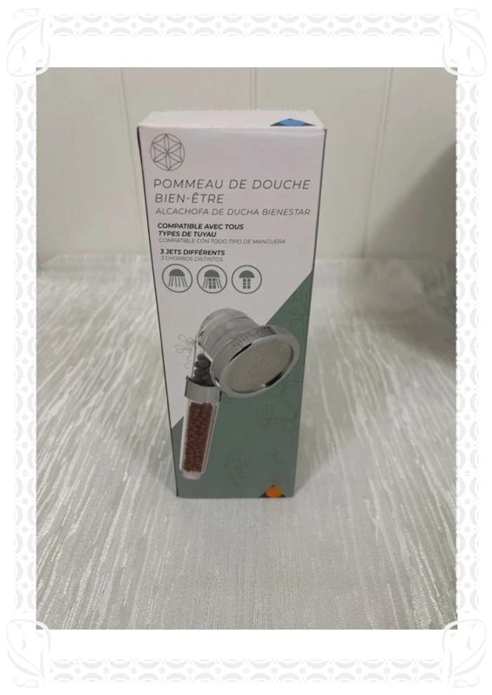 Pommeau de douche bien être 3 jets différents Compatible avec tous types de tuyaux Ce pommeau de douche avec ses 3 types de jet vous procurera un moment de confort et de détente