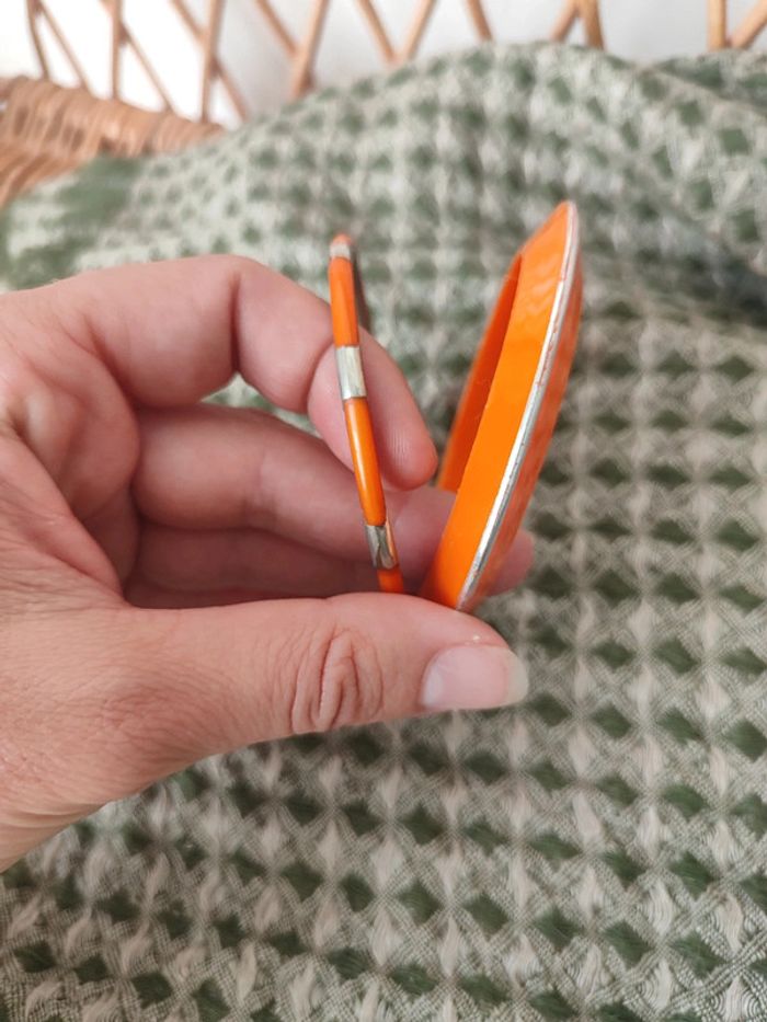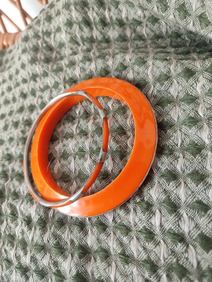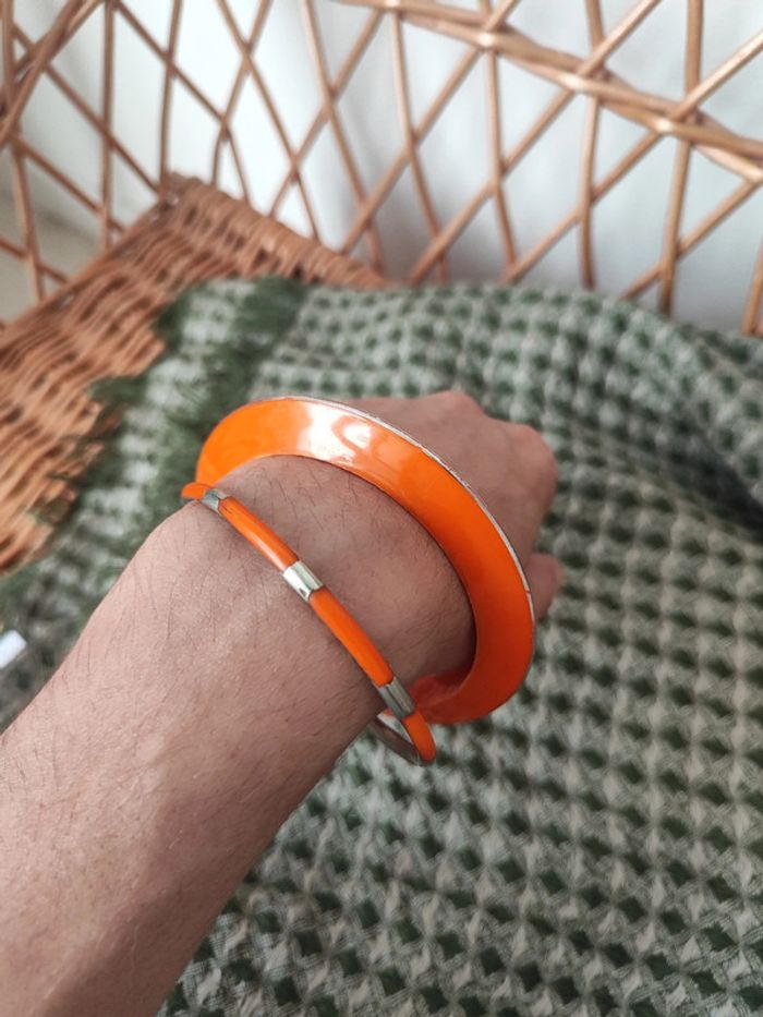 Duo de joncs vintage rétro orange et argent De légères traces d'usure dûes au temps visibles sur les photos car ils datent des années 70, mais sinon très bon état