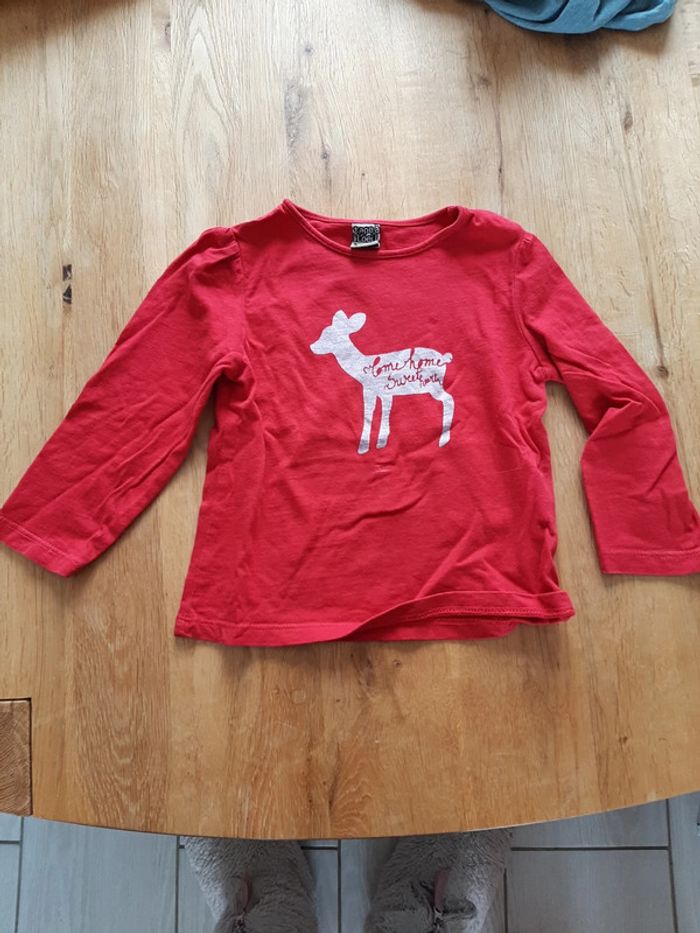 Un t-shirt à manches longues filles taille 18 mois marque tape à l'oeil coloris rouge avec une image dessus très bon état