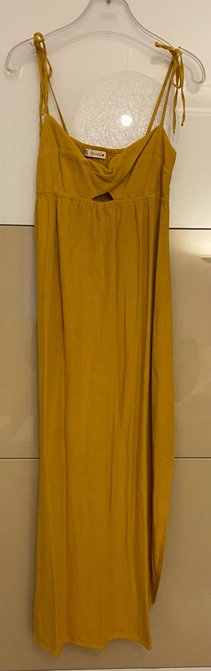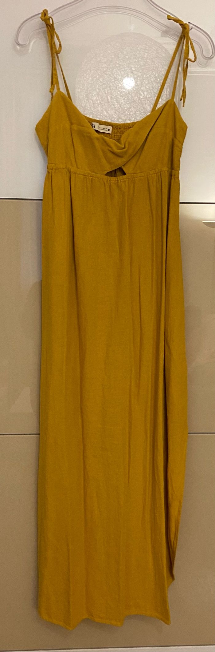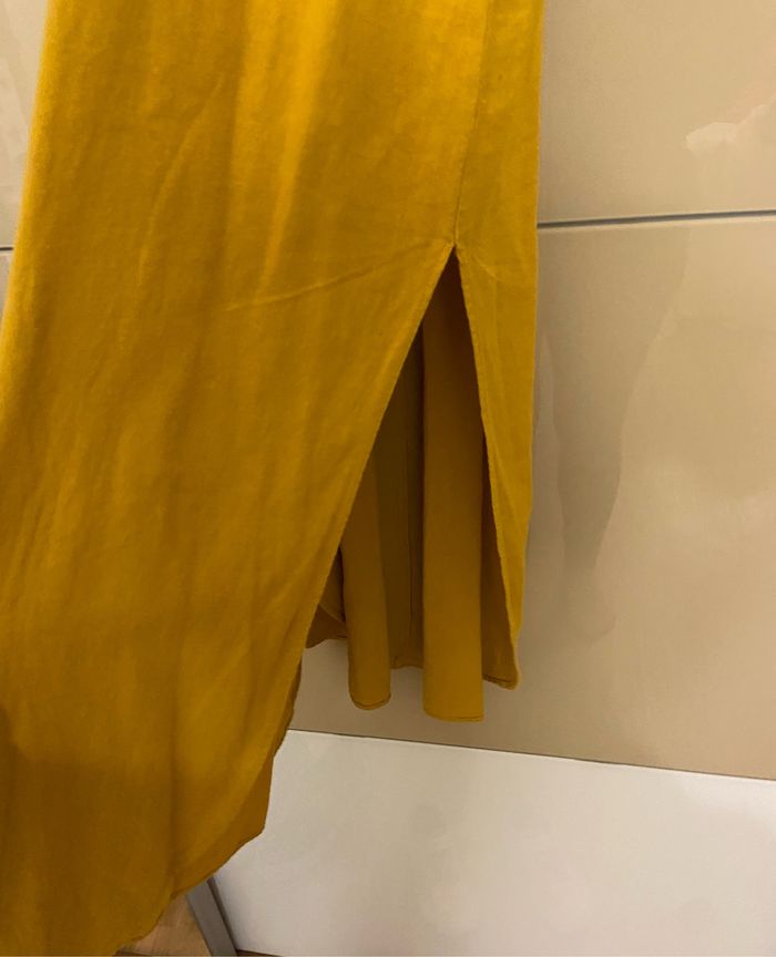 Robe longue en lin Moutarde Fines bretelles ajustable Fentes sur les côtés Viscose et lin M