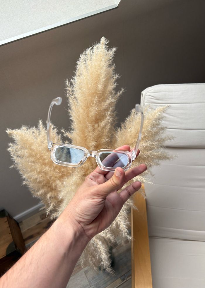 #occhialidasole #rettangolari #montaturatrasparente #lentiblu #unisex #nuovi #parigi