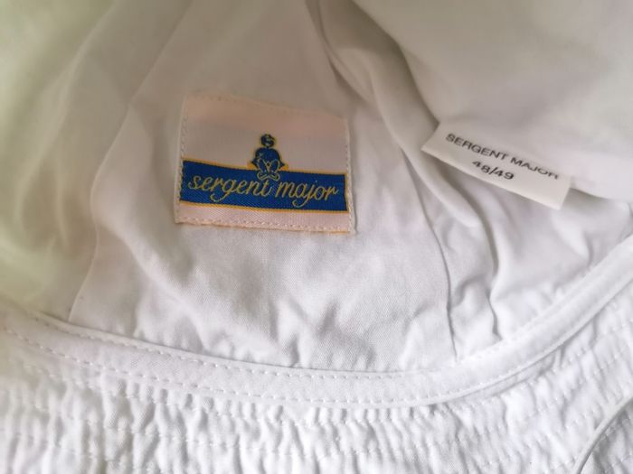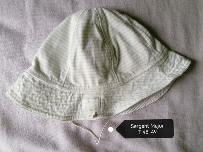 Bonjour, Je vends ce joli chapeau blanc rayé Sergent Major T 48-49.