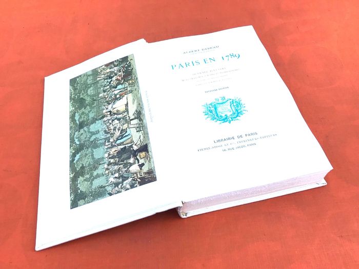 (article vendu en l' état, état d' usage voir toutes les photos) Albert Babeau Paris en 1789 Ouvrage illustré de 150gravures sur bois et photogravures et d' une chromolithographie d' après des estampes de l' époque Nouvelle Edition 368 pages Librairie de Paris Firmot-Didot et Compagnie Imprimeurs Editeurs (270x180x40)mm Poids : 1kg250