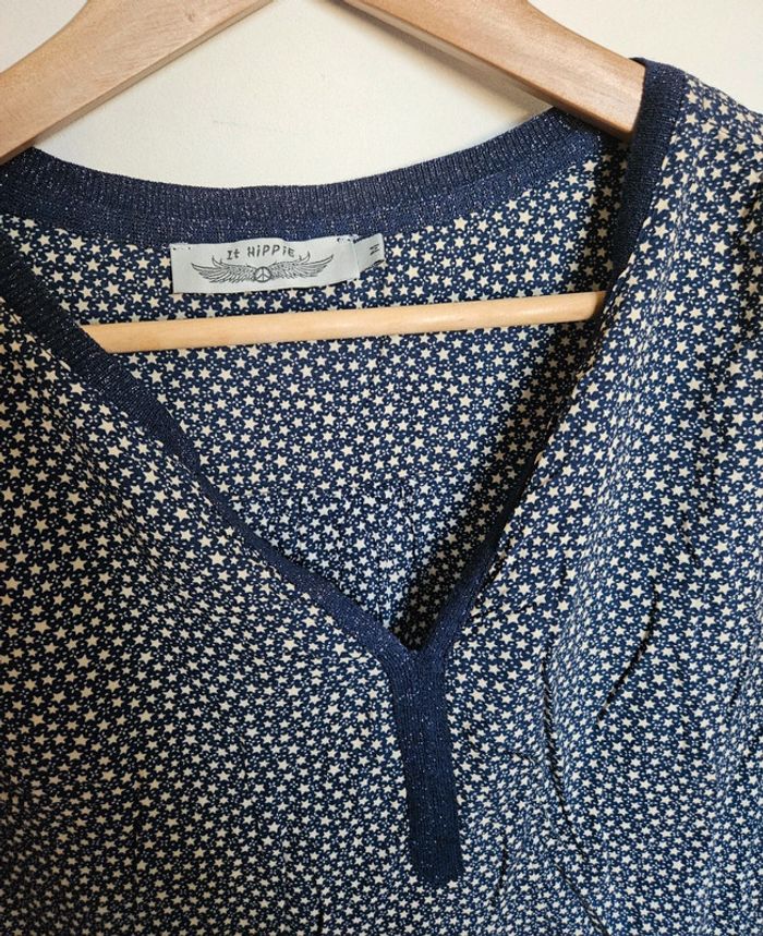 📌 Lot 20% de remise pour l'achat de 5 articles, suite ... Blouse bleu avec de Etoiles , manche 3/4 retroussable, ➡️Largeur à plat sous les bras  48 cm ➡️Longueur 65 cm ➡️100% viscose ⭐ Excellent état ✈Envoi rapide des colis 💗 Abonnez vous à mon profil, nombreux articles ajoutés régulièrement ! 🌸 Tapez Laetitresors pour voir mes annonces #laetitresors_blouse38 #blouse #hippie #it #bleu #etoile #marine #manche #bouton #retroussable #chemisier #chemise #top #laetitresors