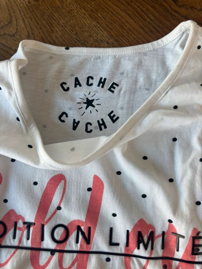 Très beau t shirt femme ,court.t shirt à pois.de la marque cache cache en taille s.t shirt en très bon état. #tshirt #tshirtcourt #cachecache #tresbonetat