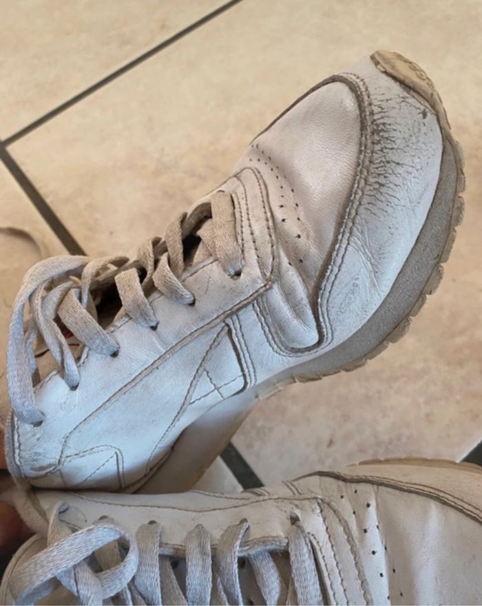 Basket reebok blanche dans l’état comme vous pouvez le voir mais j’espère que quelqu’un pourra leur redonner une autre vie