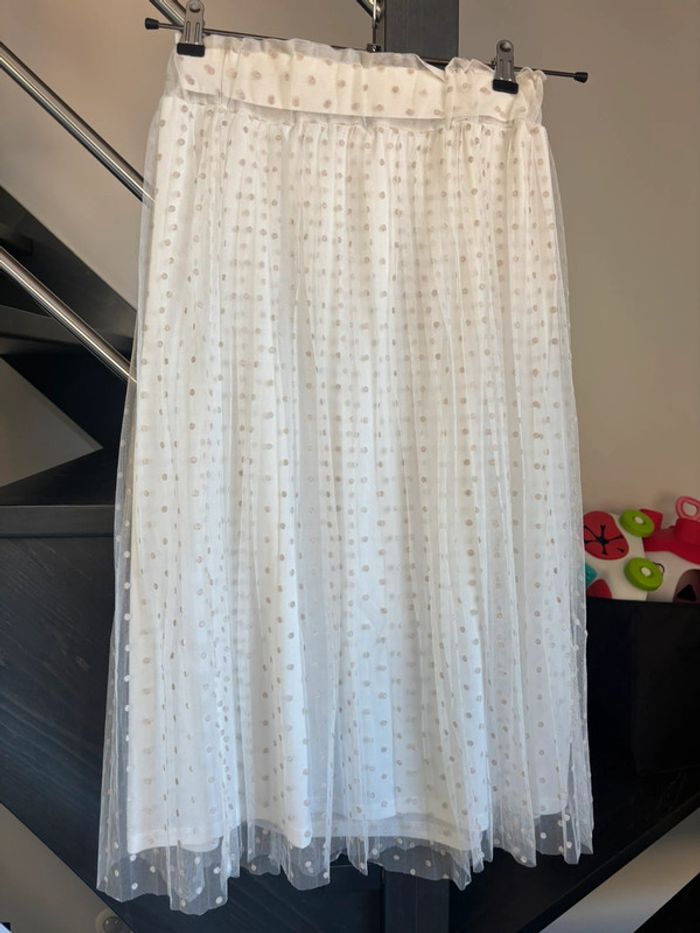 Très belle jupe longue de la marque Gemo en taille xs.jupe blanche ,doublé. En tulle à pois .léger accro (voir photo) mais ne se voit quasiment pas. #jupe #jupelongue #jupetulle #bonetat