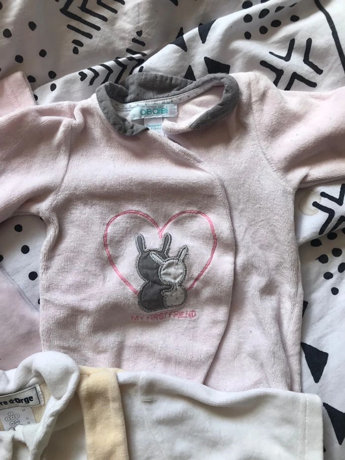 3 pyjamas velours 1 mois Bon état Obaibi grain d’orge