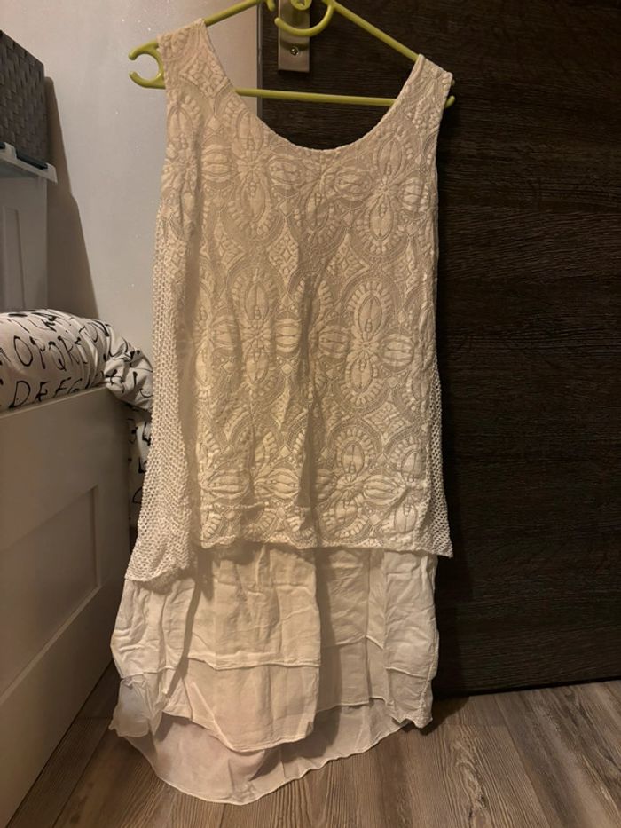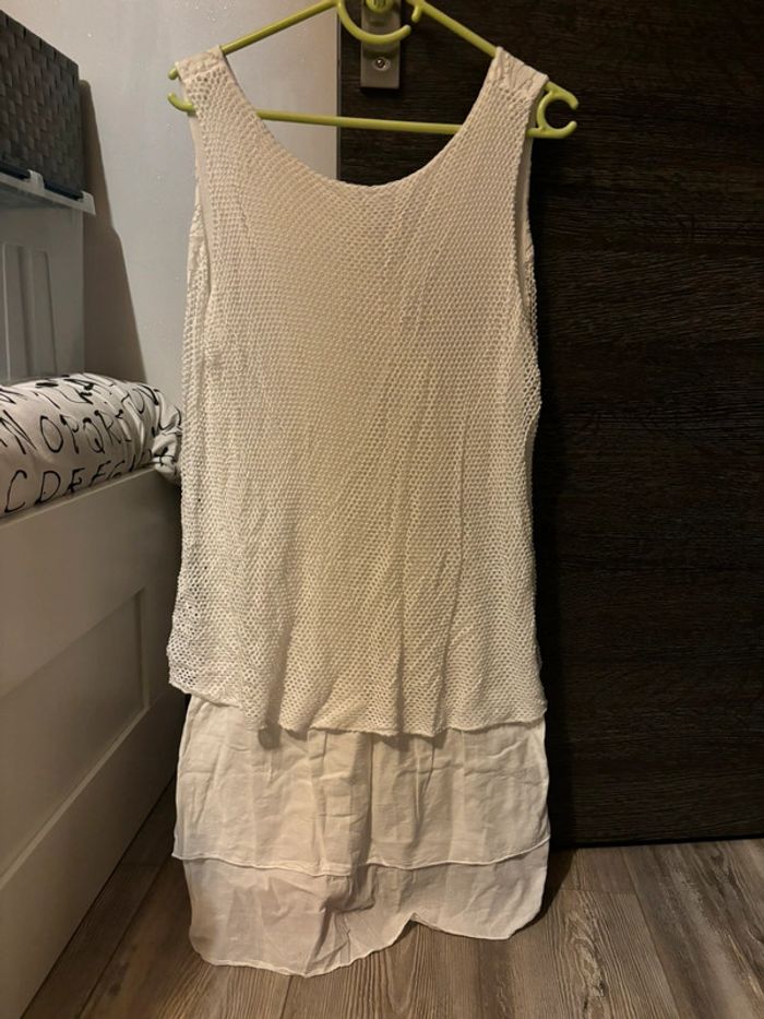 Très belle robe femme,robe crème avec superposition de tissu.robe fluide et légère.en très bon état.robe en taille 38. #robe #robefemme #robefluide #tresbonetat