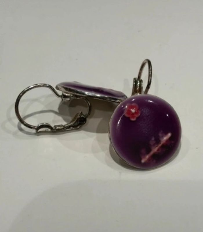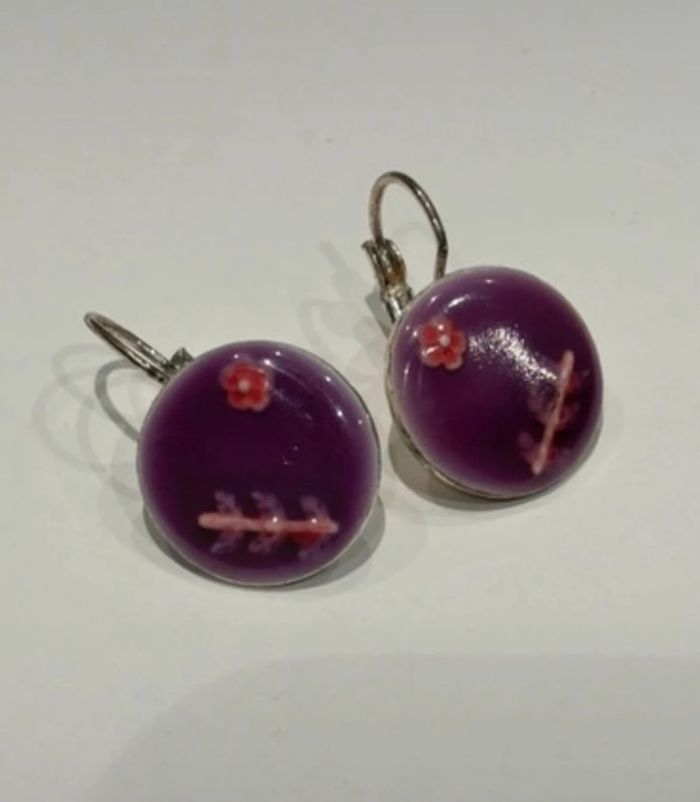 Très belle paire de boucles d oreilles fantaisie.en acier inoxydable,de couleur violette,boucles en très bon état. #bijoux #bouclesdoreilles #acierinoxydable #tresbonetat