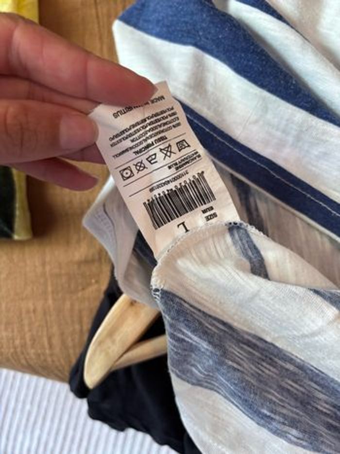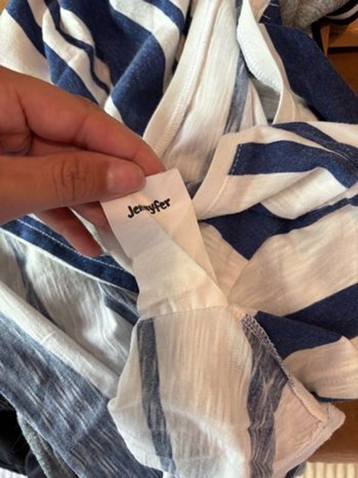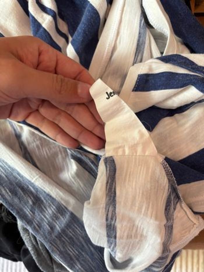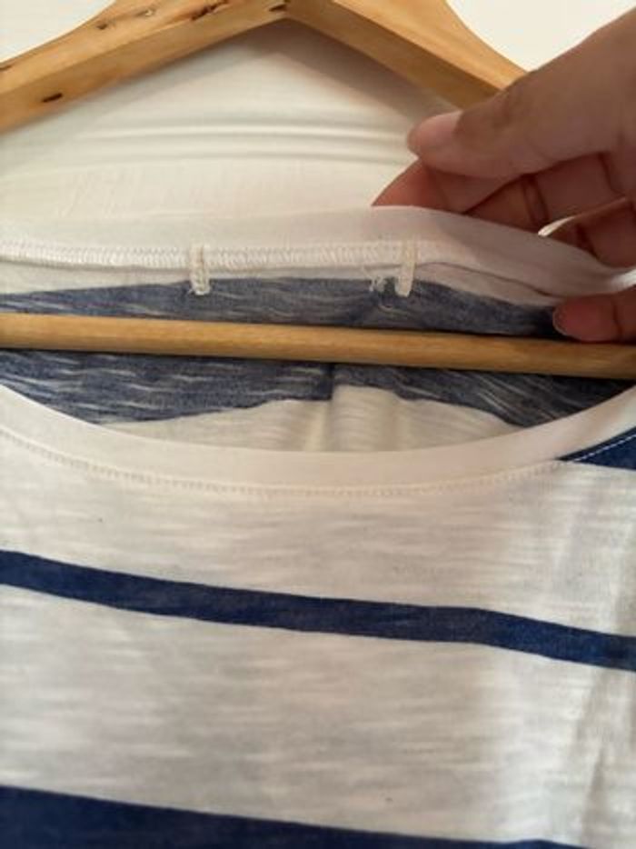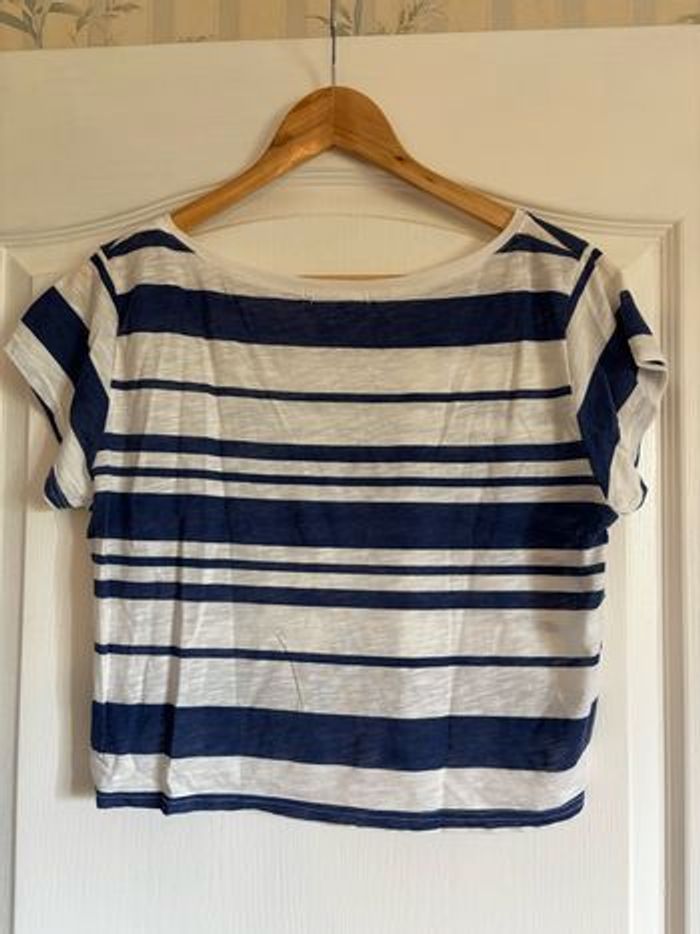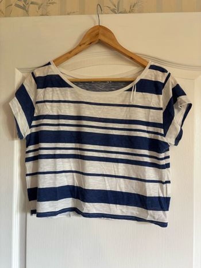 Tee shirt court croc top taille L Bleu et blanc à rayures Léger parfait pour l’été L’étiquette a été coupé car elle grattait