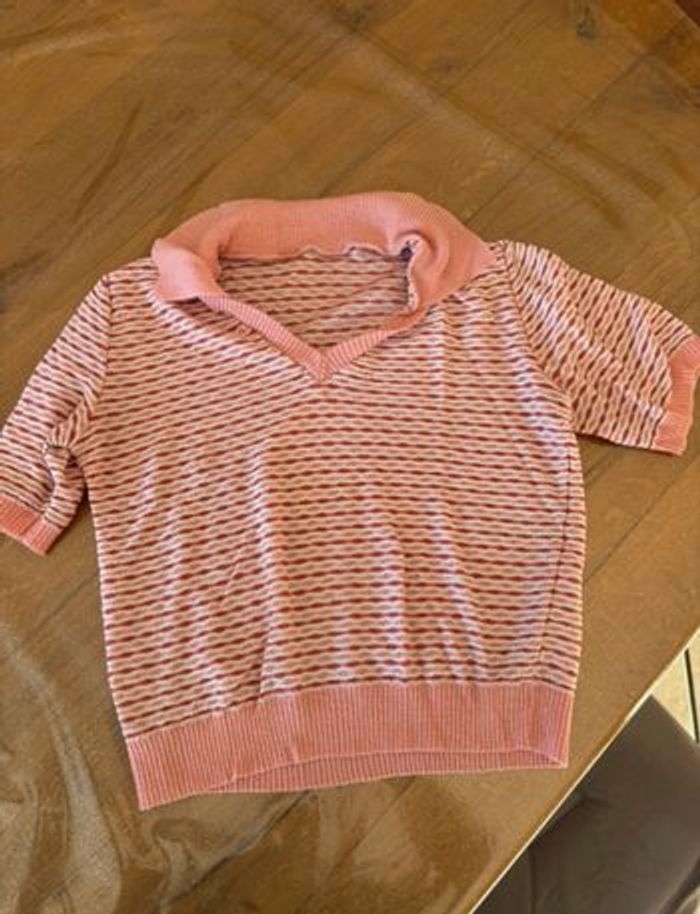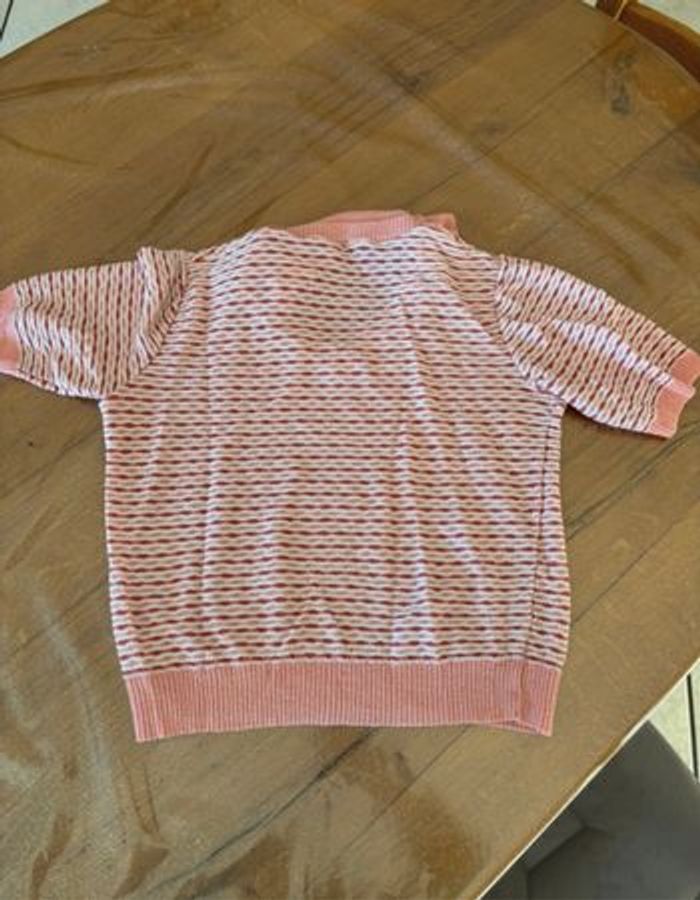 Tee shirt rose à manche courte à maille Rose et blanc Col à revers Col en V En très bon état Je ne connais pas la marque