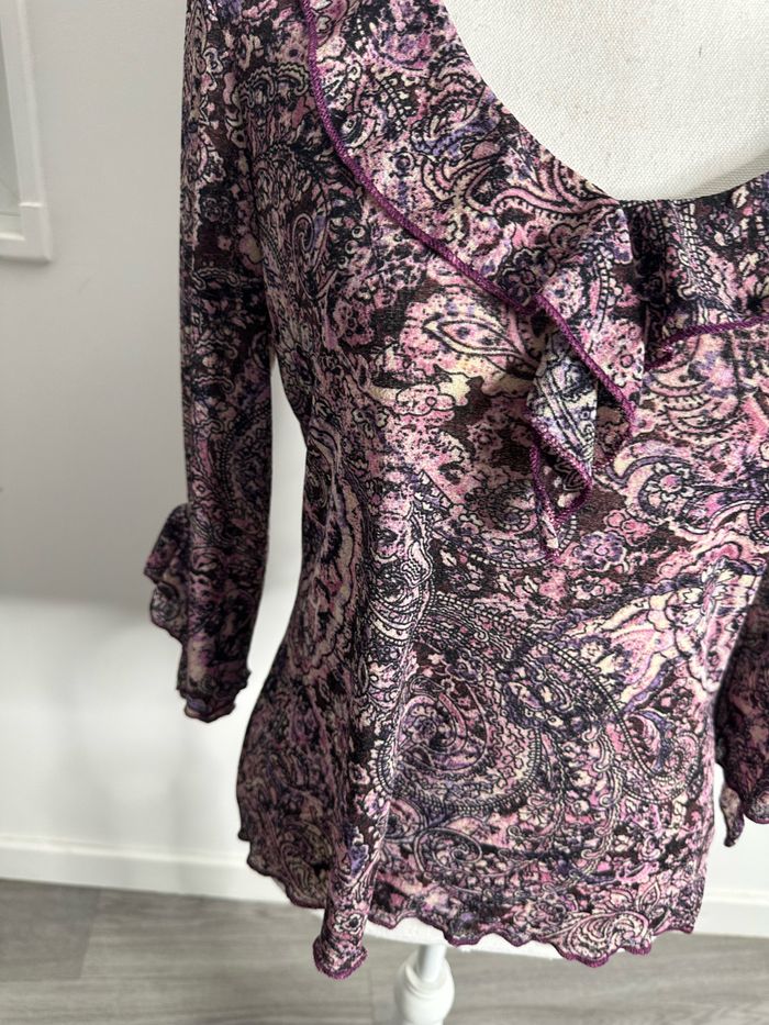 Blouse en mesh paisley violette et rose Y2K T40 L