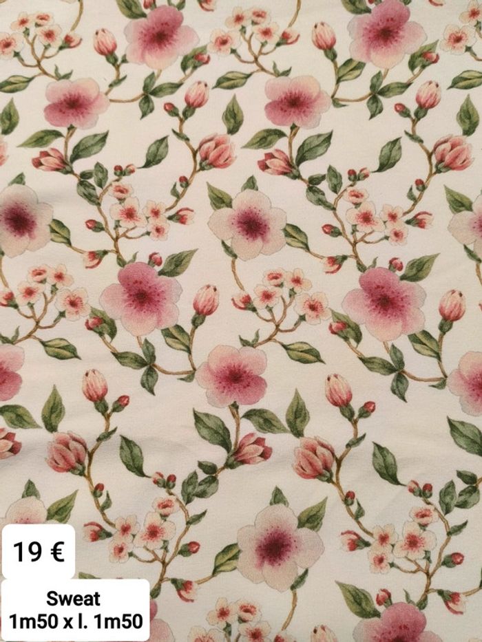 Sweat fleuri fond blanc 1m50 x l. 1m50 Neuf