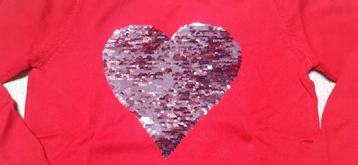 Pull fin h&m 122/128 cm rouge cœur séquins réversibles neuf - photo numéro 3