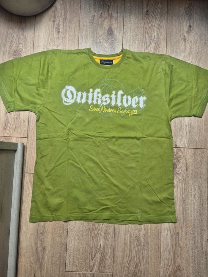 PRIX DE VENTE FERME MERCI Bien lire le descriptif svp Tee-shirt Manches courtes Le modèle a quelques années.... Vert avec inscription "quicksilver" ATTENTION : IL EST SANS MARQUE, Il S'AGIT JUSTE D'UNE INSCRIPTION !! XL en bon état ( inscription un peu craquelée et mini trou dans le bas du dos défauts visibles sur photos) Pour visualiser tous ce que je possède pour homme en taille XL : #ambre62690hommeXL
