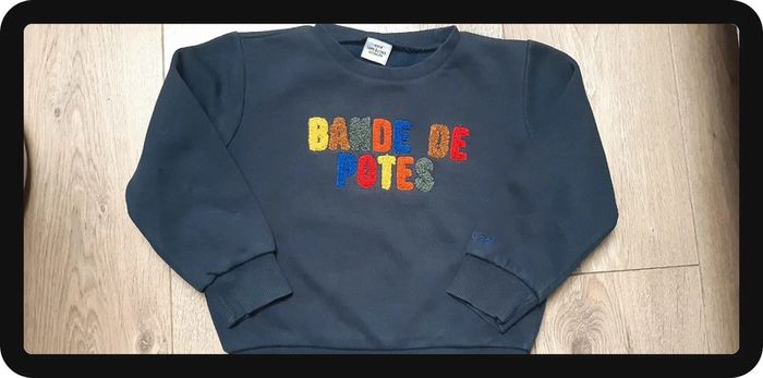 Pull type sweat tape à l'oeil  "bande de potes" bleu marine 4 ans - photo numéro 1