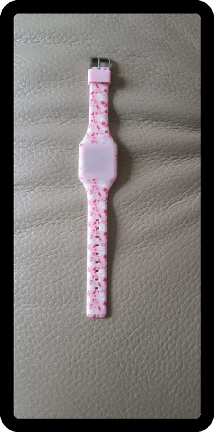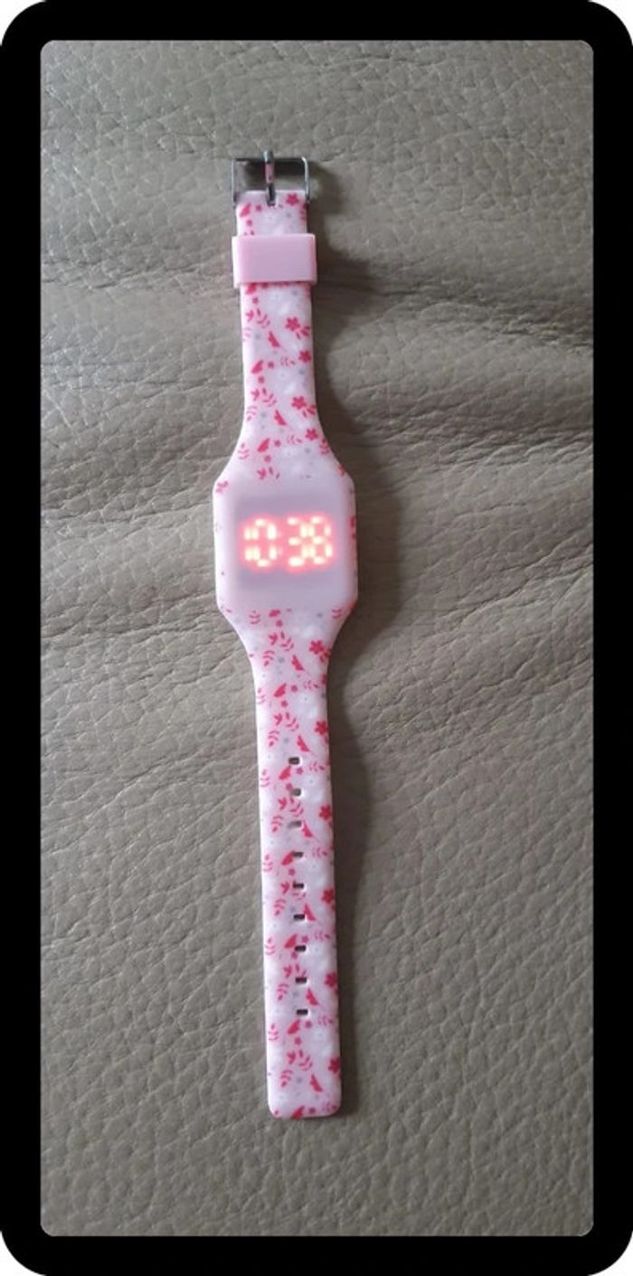 JE N'ACCEPTE PAS D'OFFRE MERCI Montre électronique Ton rose fleuri Bracelet adaptable en "caoutchouc " S'adapte bien au poignet et agréable à porter. Pour fille L'heure s'affiche en appuyant sur le cadran puis disparaît :-) (ne reste pas constamment allumée) état neuve (le bracelet était trop petit pour ma fille de 10 ans, elle n'a donc pas pu la portée)