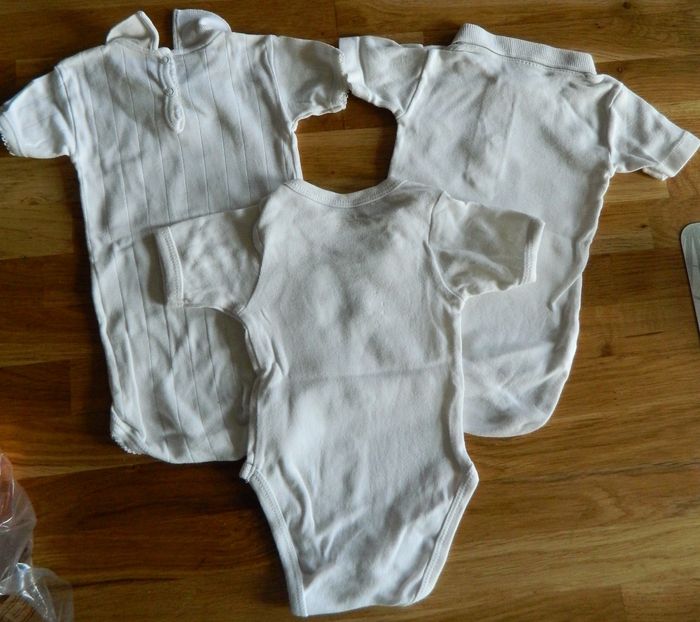 Lot de 3 bodys manches courtes blanc *Petit bateau *Absorba *Vertbaudet 1 petite tâche sur le "Petit bateau" En coton Envoie sous 48 h