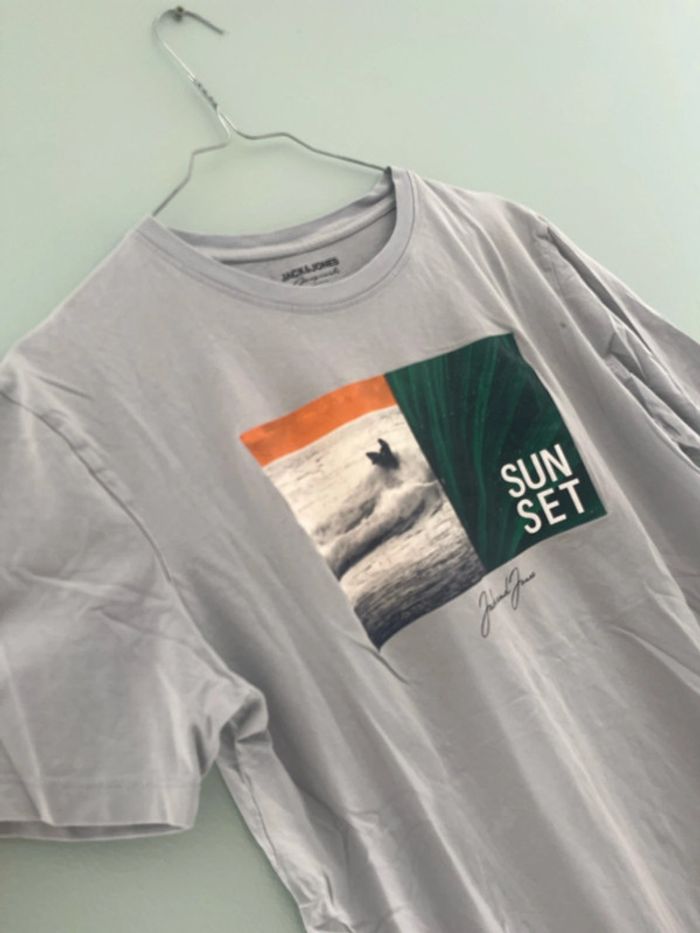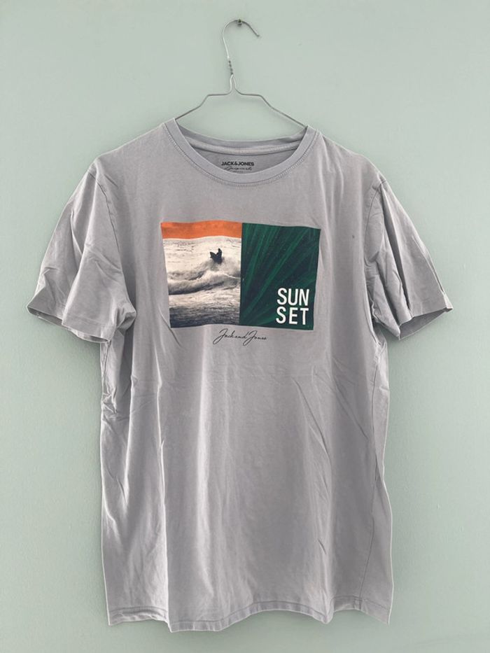 T-shirt à manches courtes gris bleu motifs sunset Jack and Jones Taille L