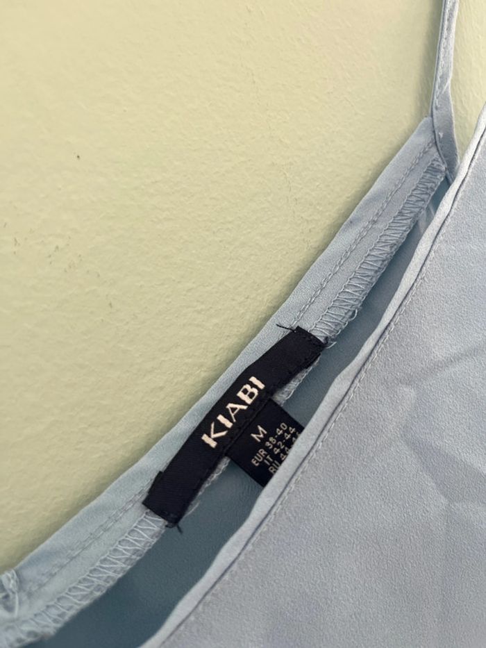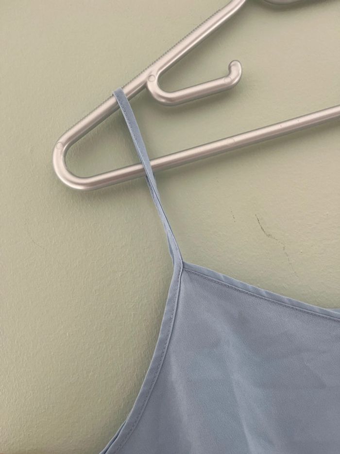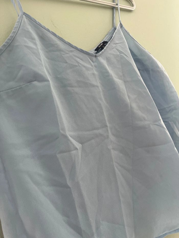 Top à fines bretelles fluide large et léger bleu ciel clair. Kiabi Taille M
