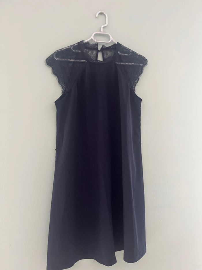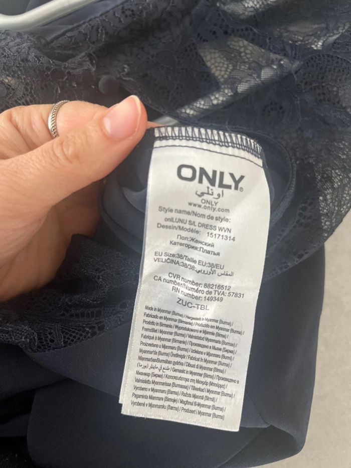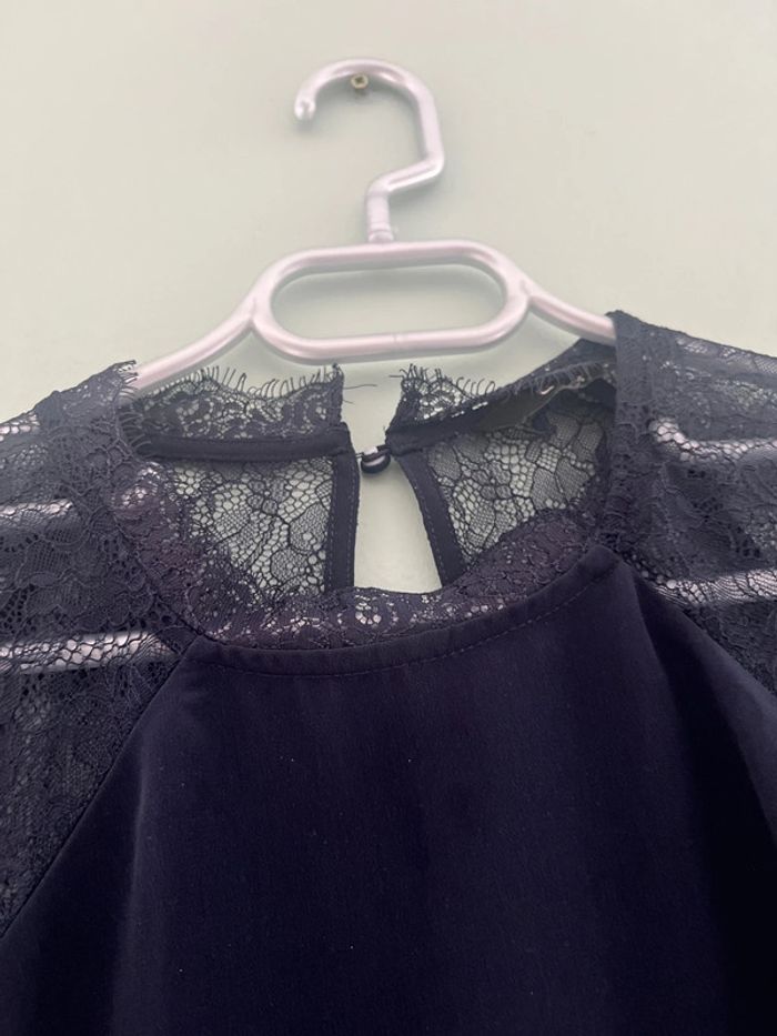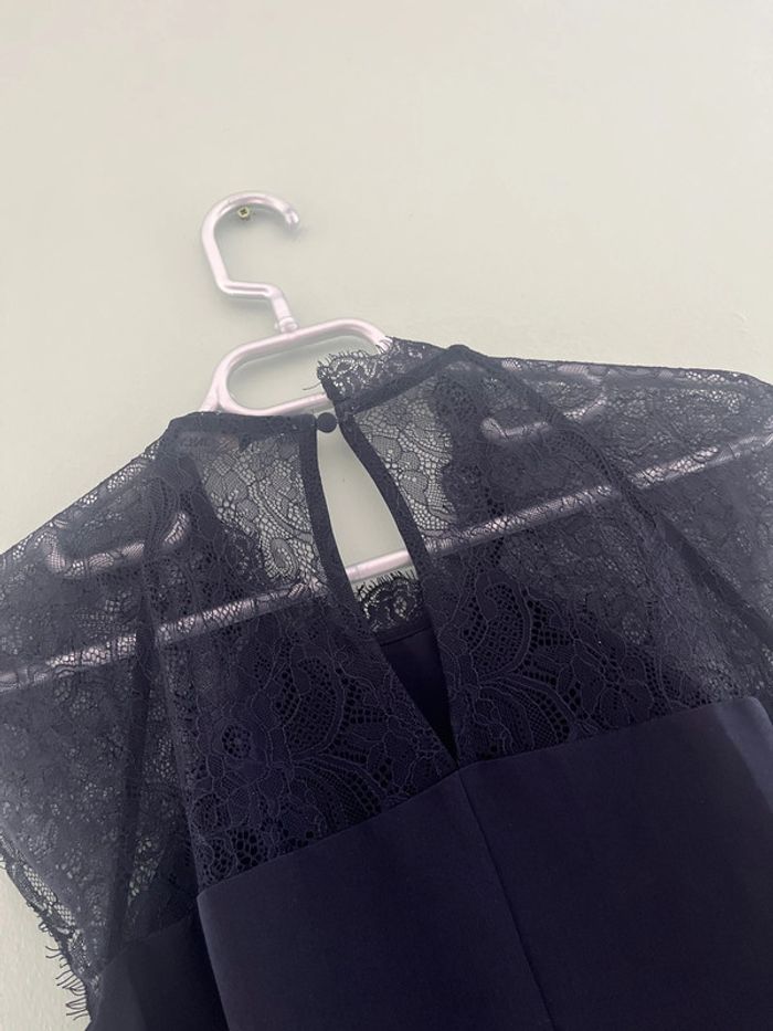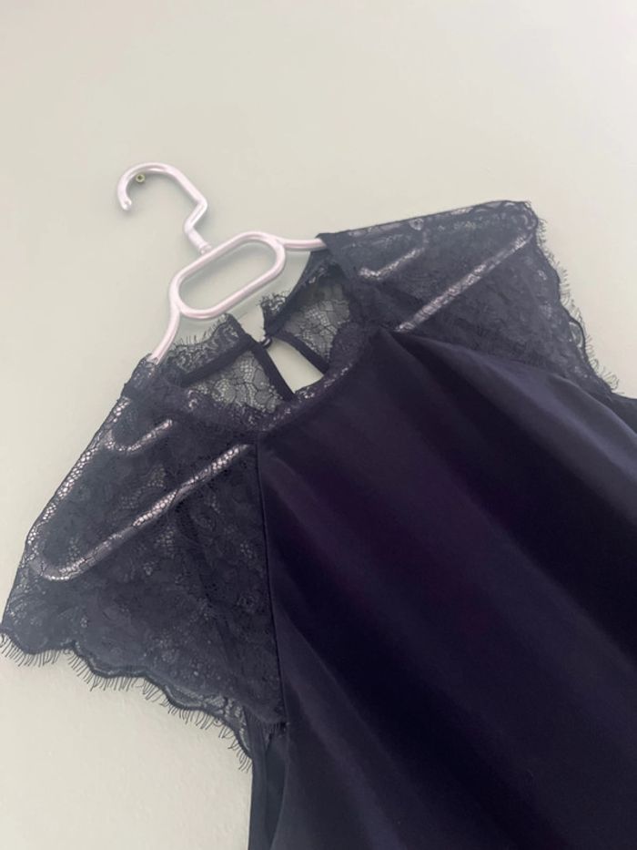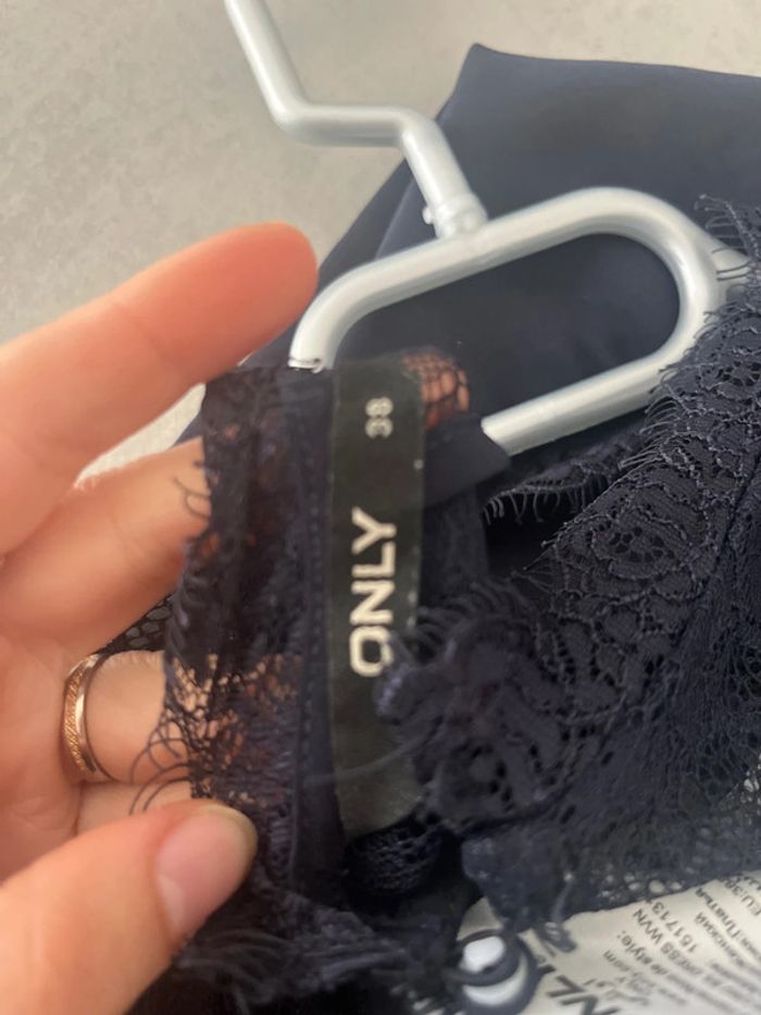Robe courte et droite en satin avec épaules dentelle bleu marine Only Taille 38