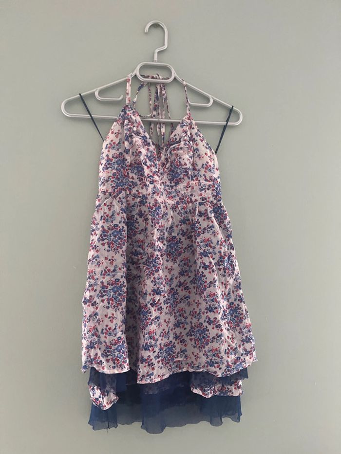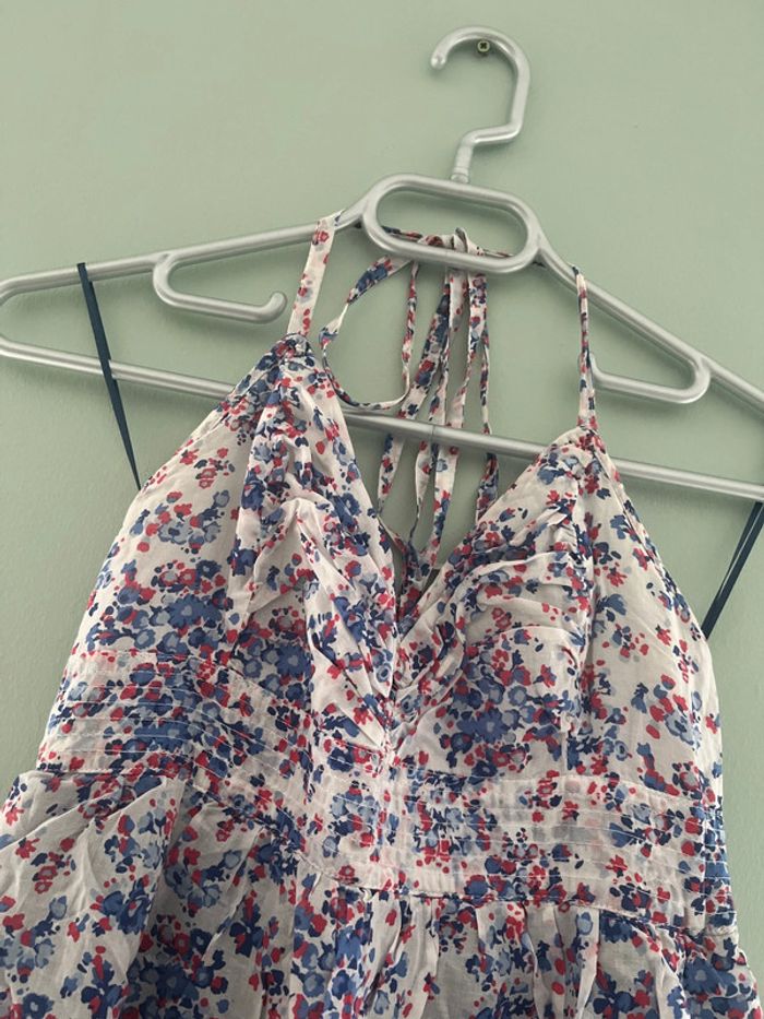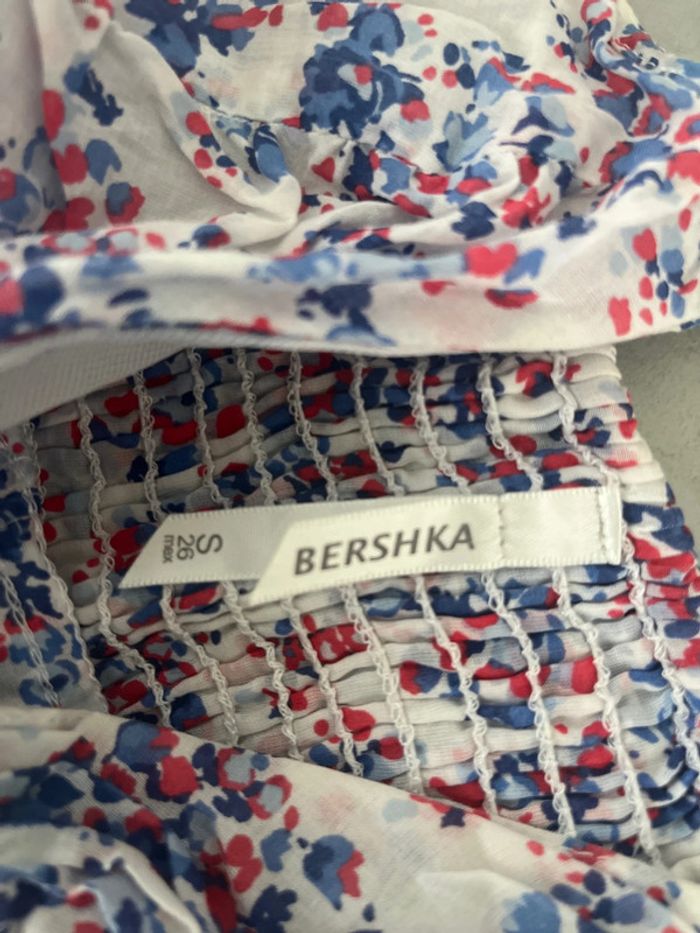 Robe courte dos nue smoké au dos Blanche avec style de fleur bleu et rouge Bershka Taille S