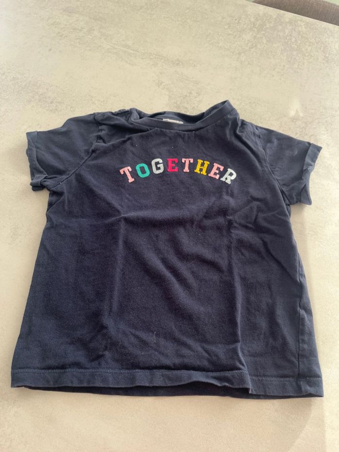 Tee shirt à manches courtes bleu marine écriture craquelés « together » multicolore Eden et Victor 4ans