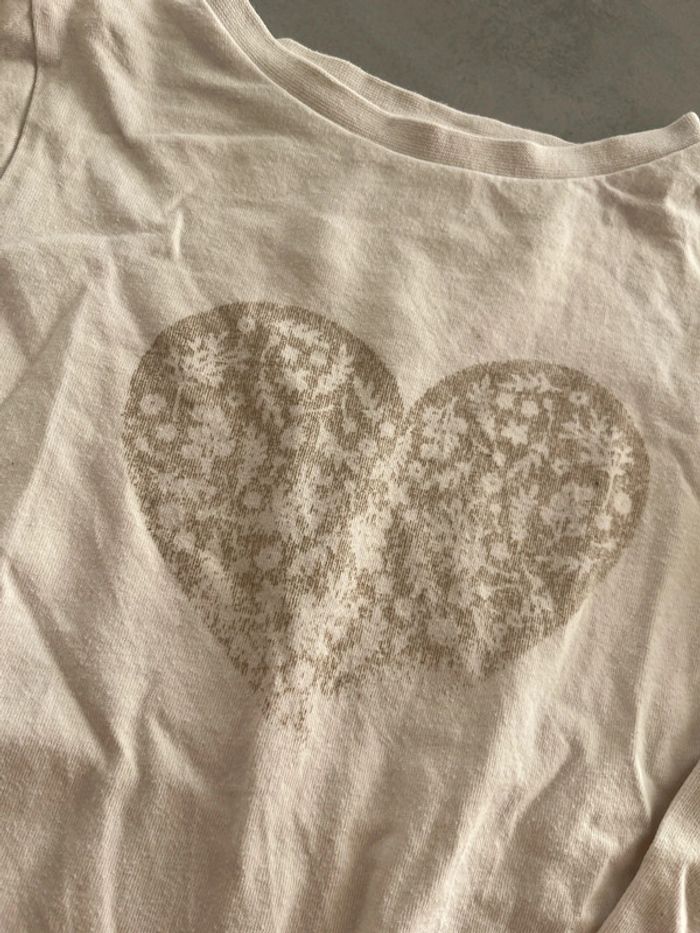 Tee shirt à manches longues beige Motif cœur délavé Eden et Victor 4ans