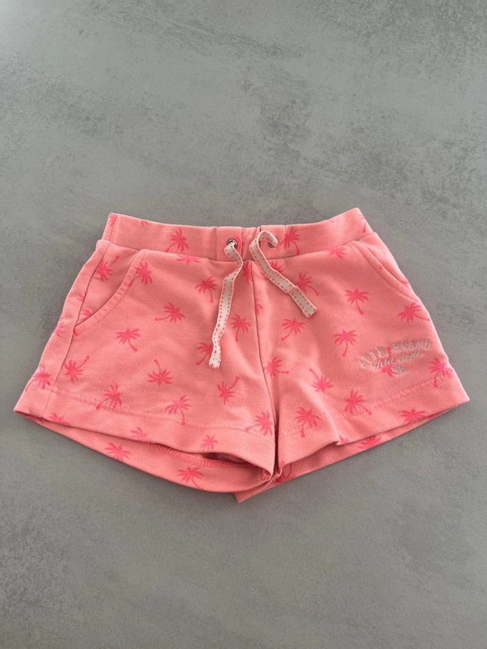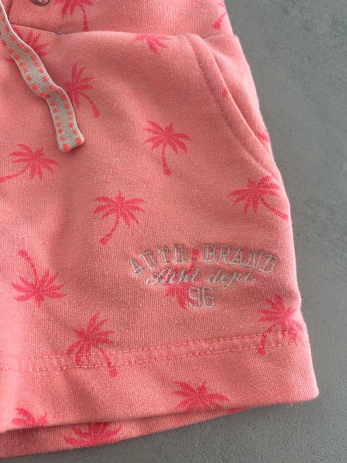 Short stretch de sport rose corail motifs palmier Taille 3ans