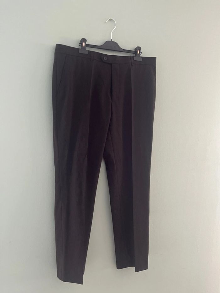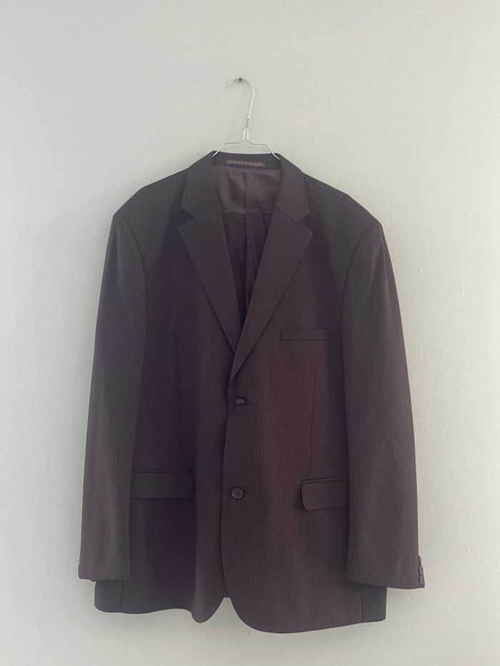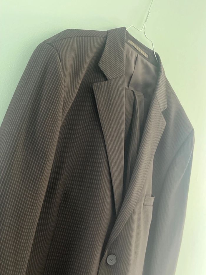 Ensemble de costume rayé noir et marron Veste de blazer taille 60 Pantalon de costume taille 48 Neuf Brice