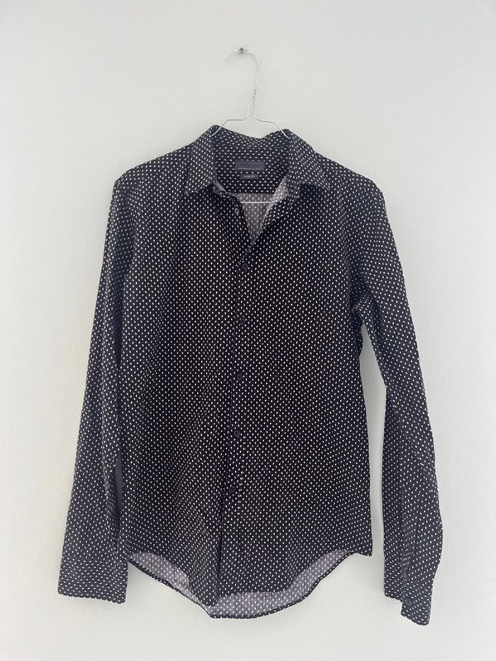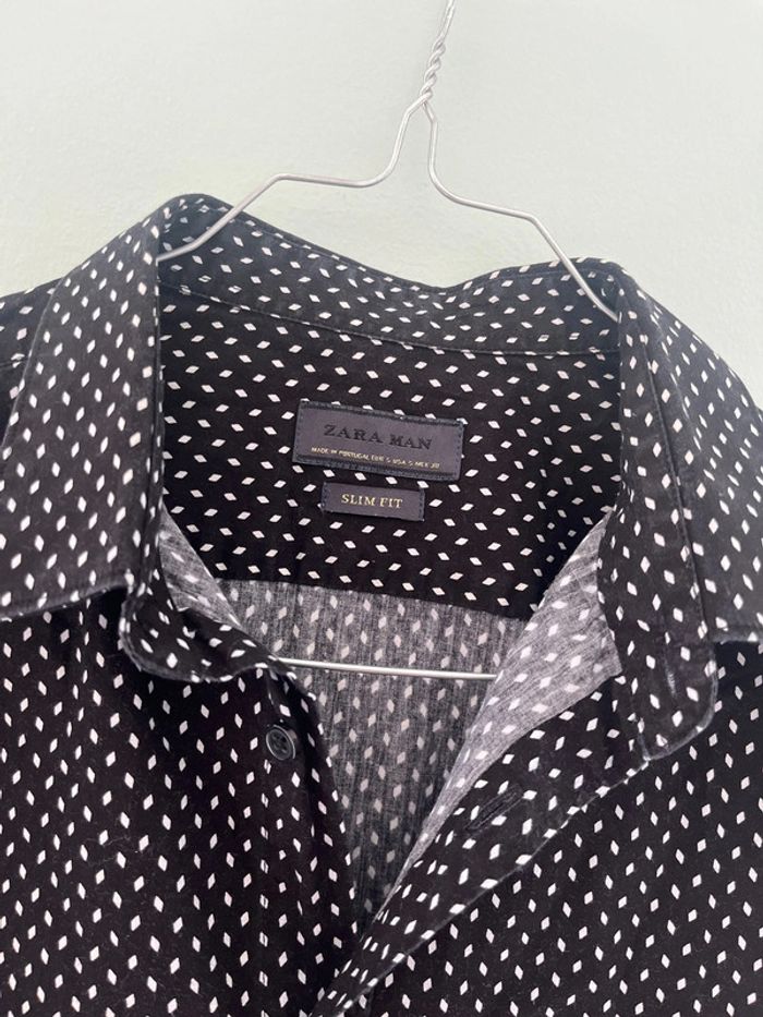 Chemise noire avec motifs petits losanges blanc. Zara man slim fit Taille s