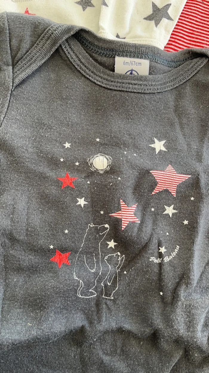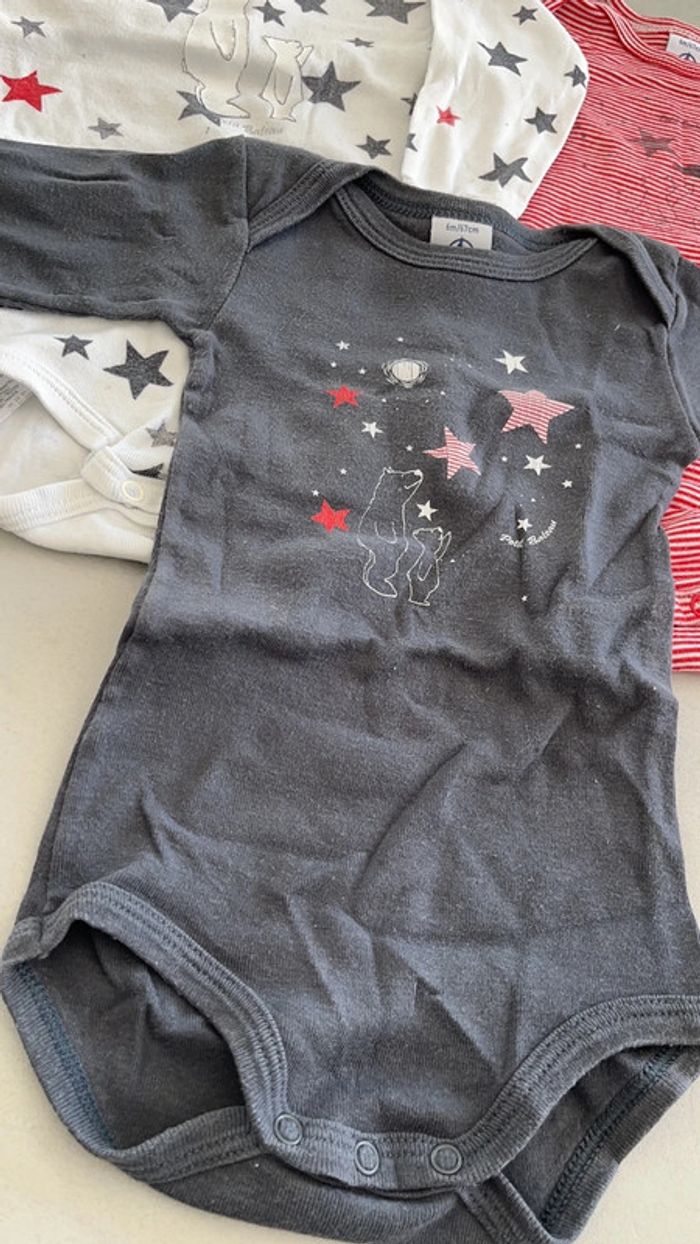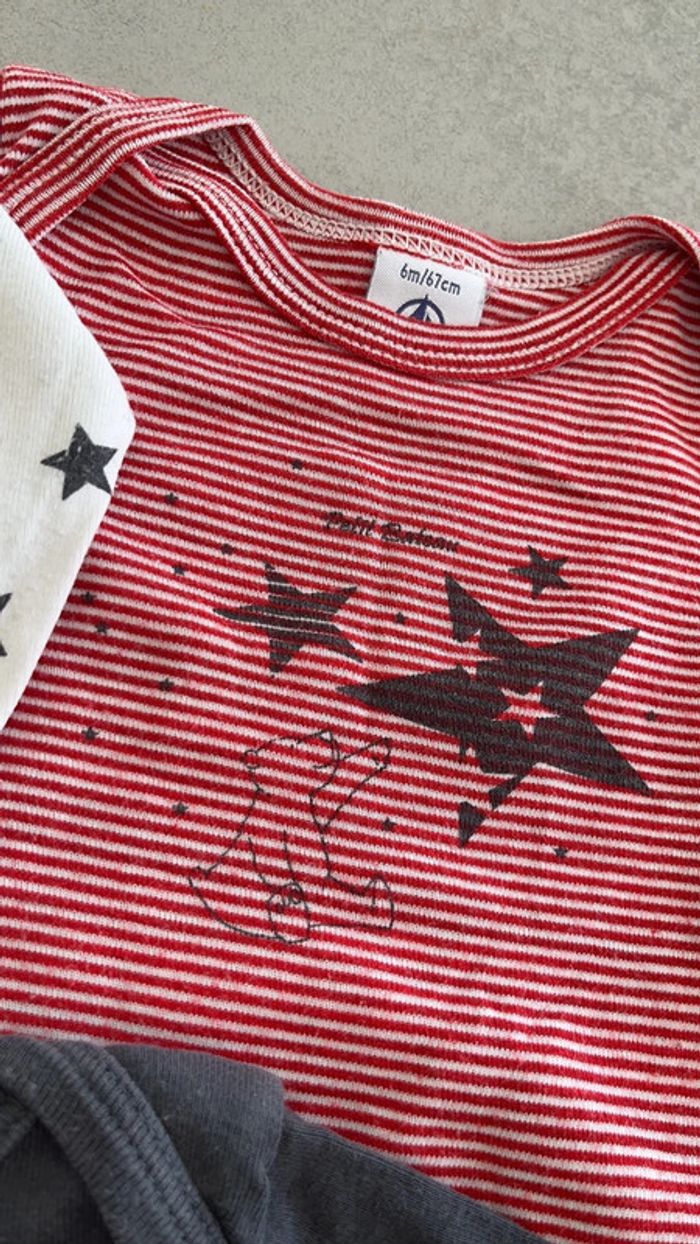 Lot de 3 bodies à manches longues Petit bateau Motifs étoiles rayure et oursons Gris anthracite blanc rouge 6mois
