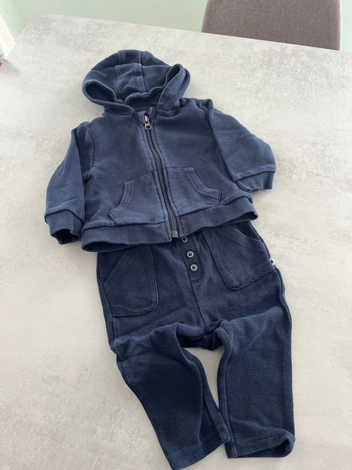 Veste de survêtement avec pantalon de jogging côtelé bleu marine Kiabi 12mois