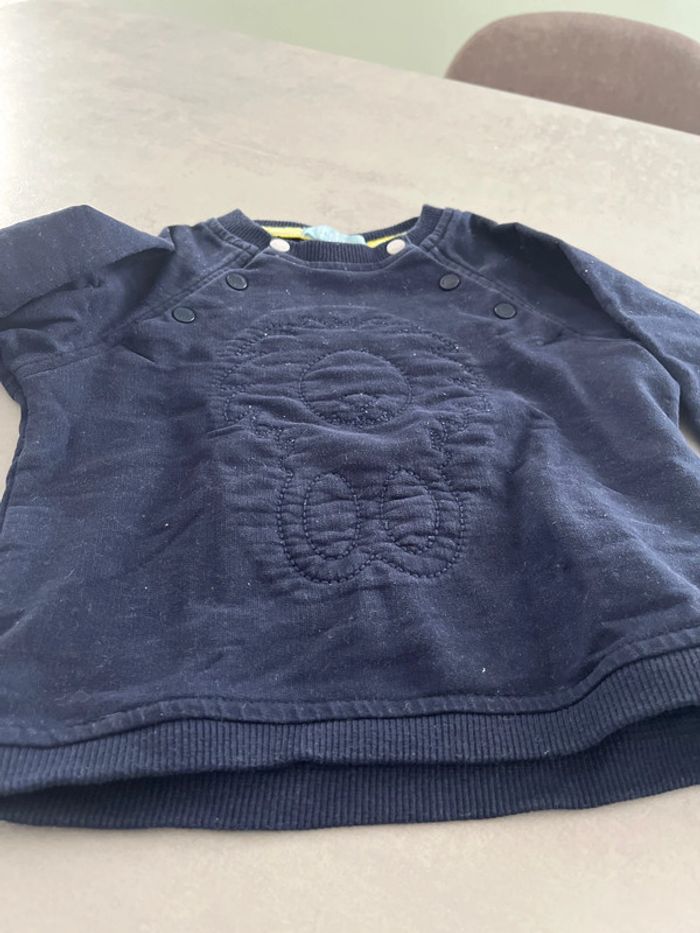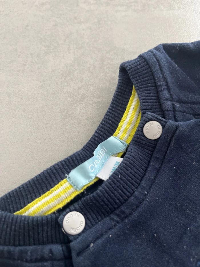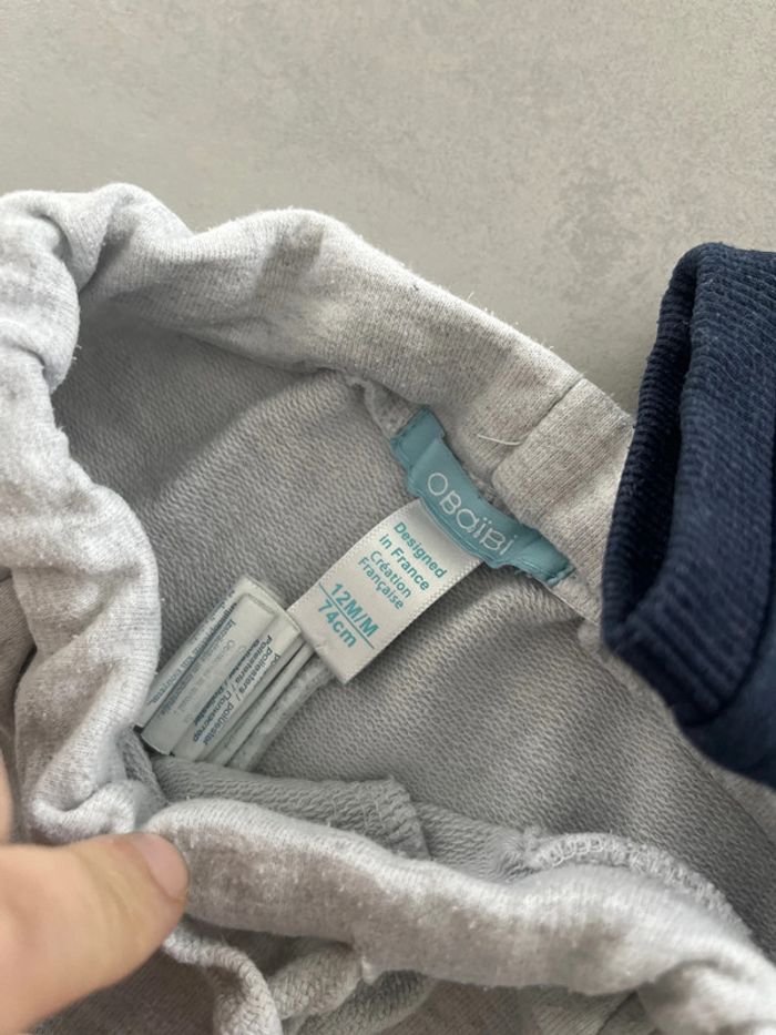 Pantalon de jogging gris Chiné Sweat shirt bleu marine tête de lion brodée Obaibi 12mois