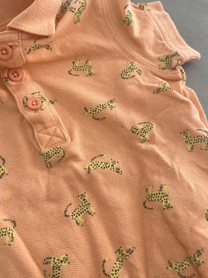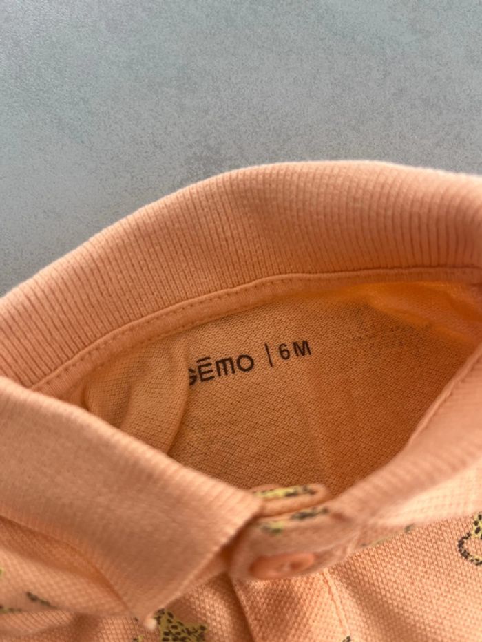 Polo à manches courtes orange Motifs guépards jaunes 6mois Gemo