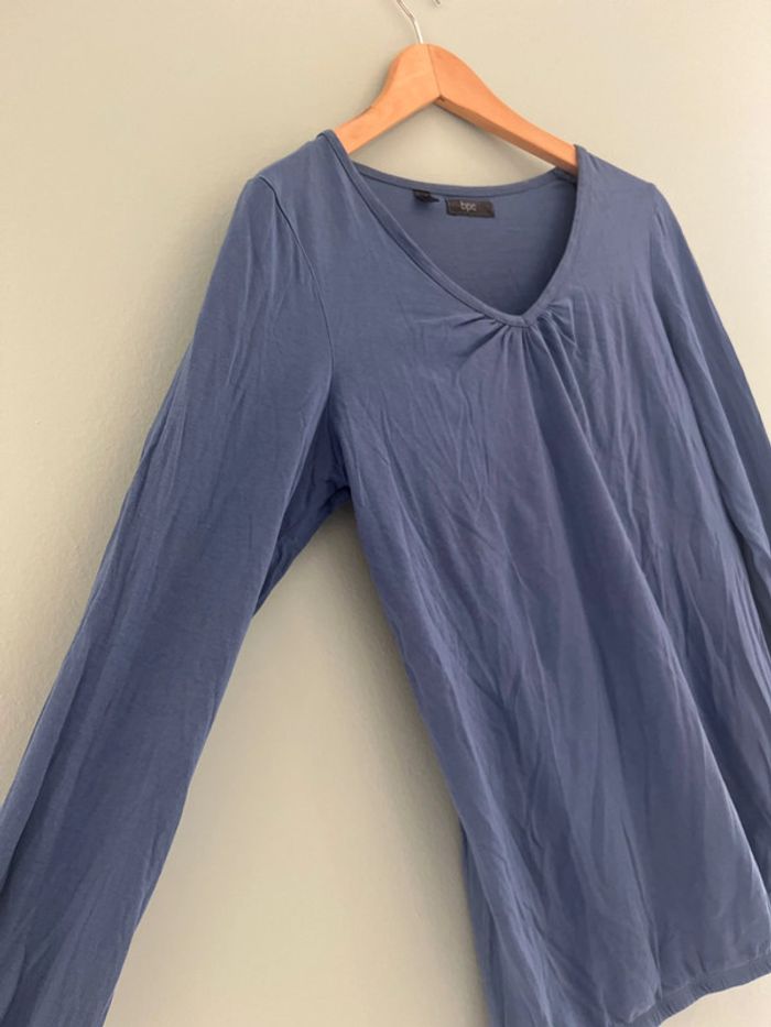 Tee shirt à manches longues bleu col en V Bon prix collection Taille 36/38
