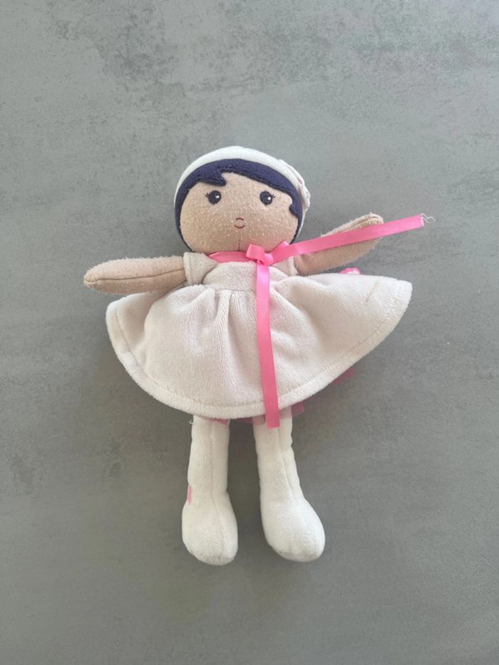 Perle est toute de tendresse et délicatesse. La plus sage de la famille, elle est telle une princesse avec son jupon en tulle et sa jolie fleur à la tête. Souriante et bienveillante, elle sera toujours aux côtés de bébé pour la réconforter et la consoler lors de chagrins. L'emblématique ours Kaloo brodé aux pieds la rend d'autant plus précieuse et unique. Un long ruban dans le dos permet d'y écrire le nom de bébé pour l'identifier facilement. Poupée de 25 cm, présentée dans un joli écrin. Cette poupée présente une attache MonKoeur au poignet. Détails produit Dimensions du produit seul 25 x 6.5 x 14 cm Matière(s) 100% polyester Coloris principal Rose Taille 25 cm