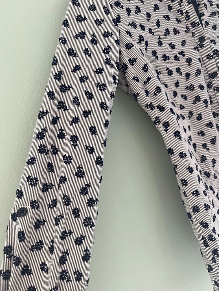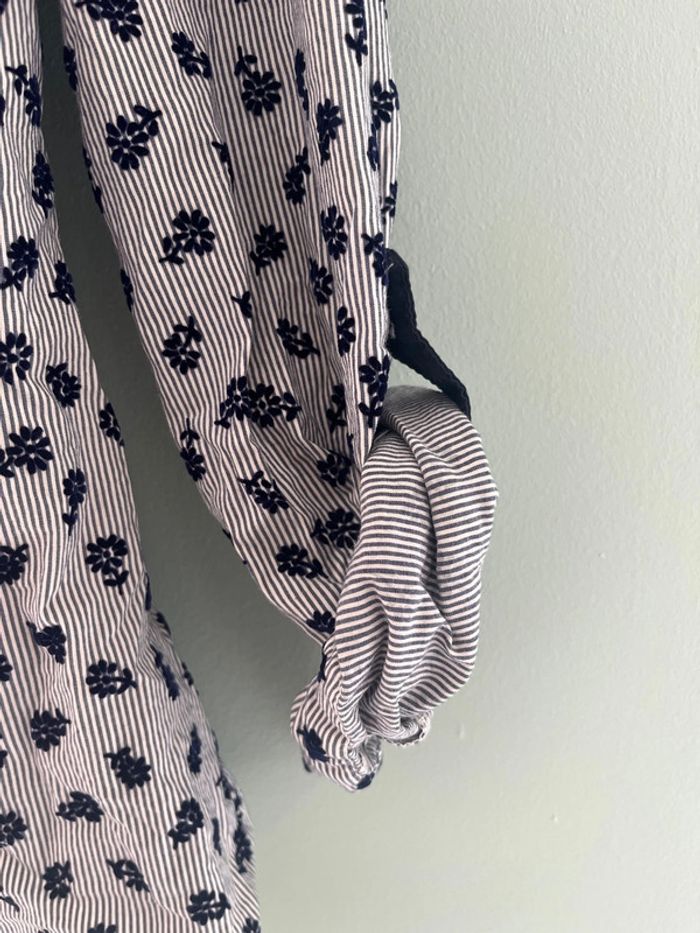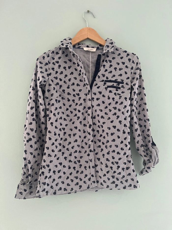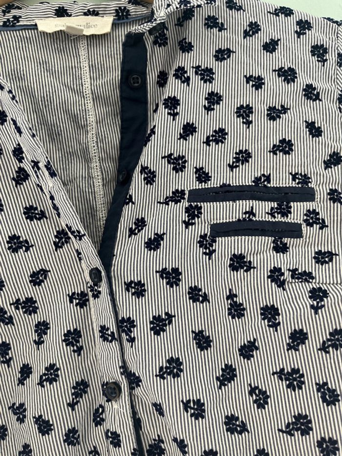 Chemise ceintré à rayure bleu marine et blanc avec fleurs en reliefs velour Grain de malice Taille 36