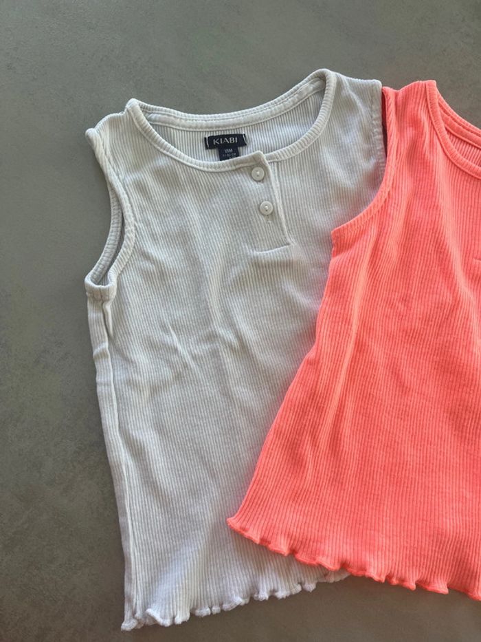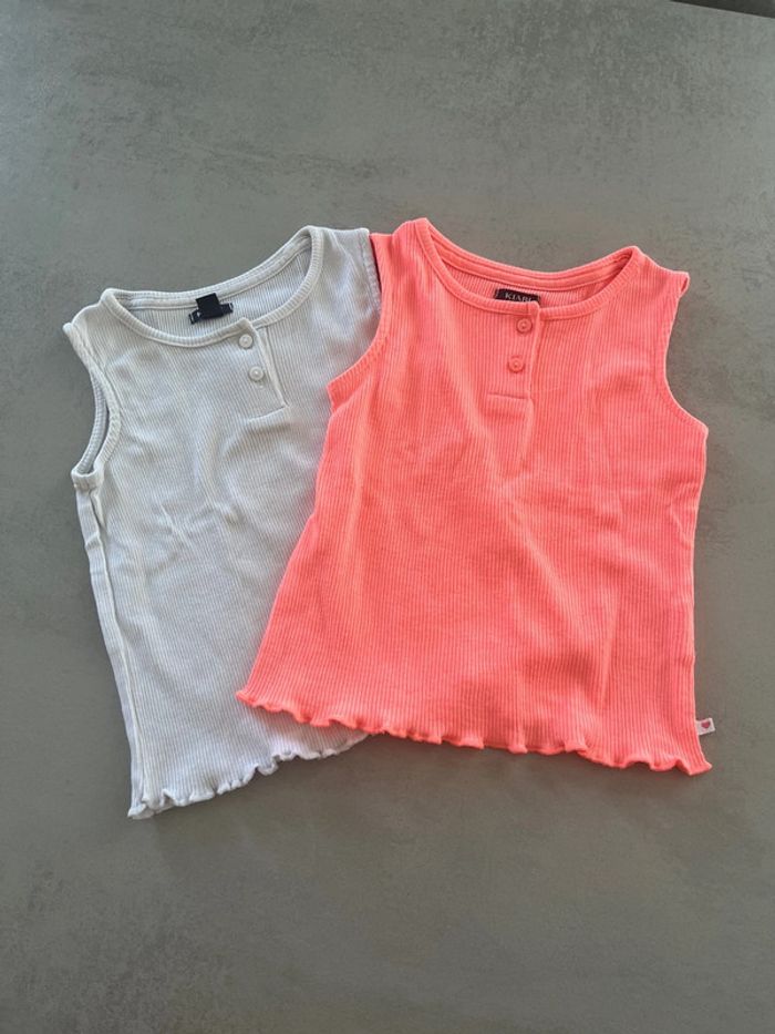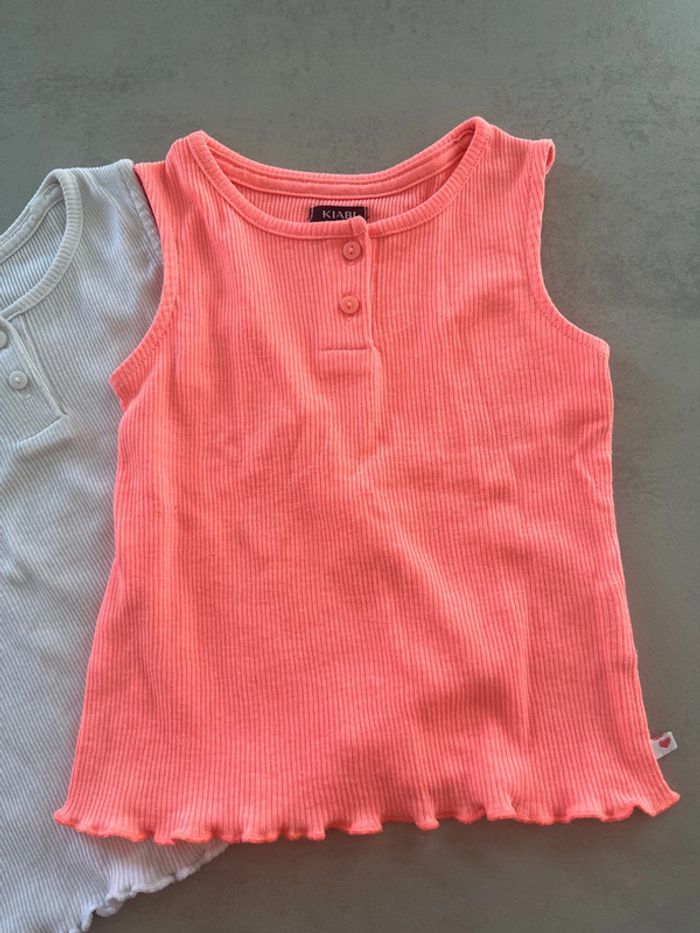 Lot de deux débardeurs côtelé avec boutons au col Un blanc et un rose corail fluo Kiabi 18mois