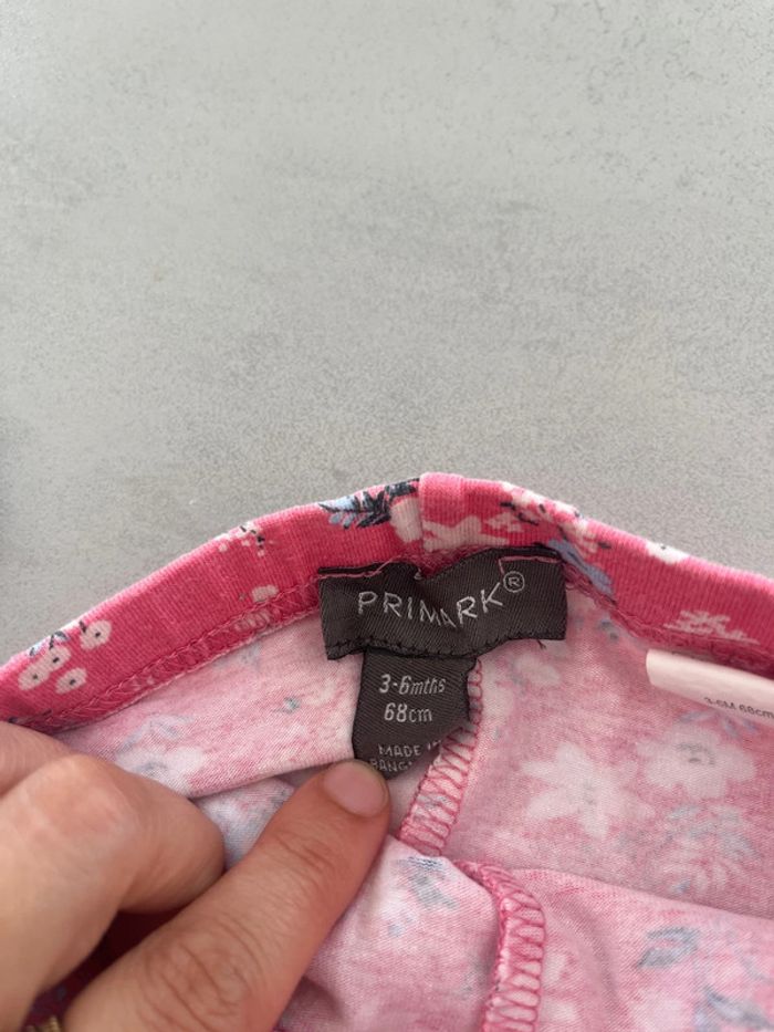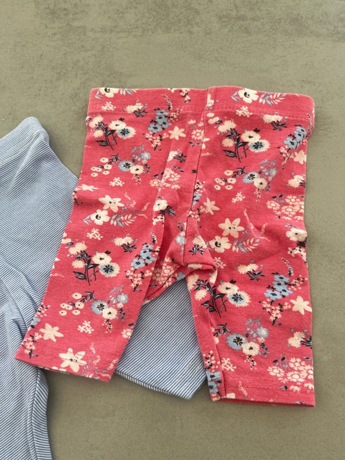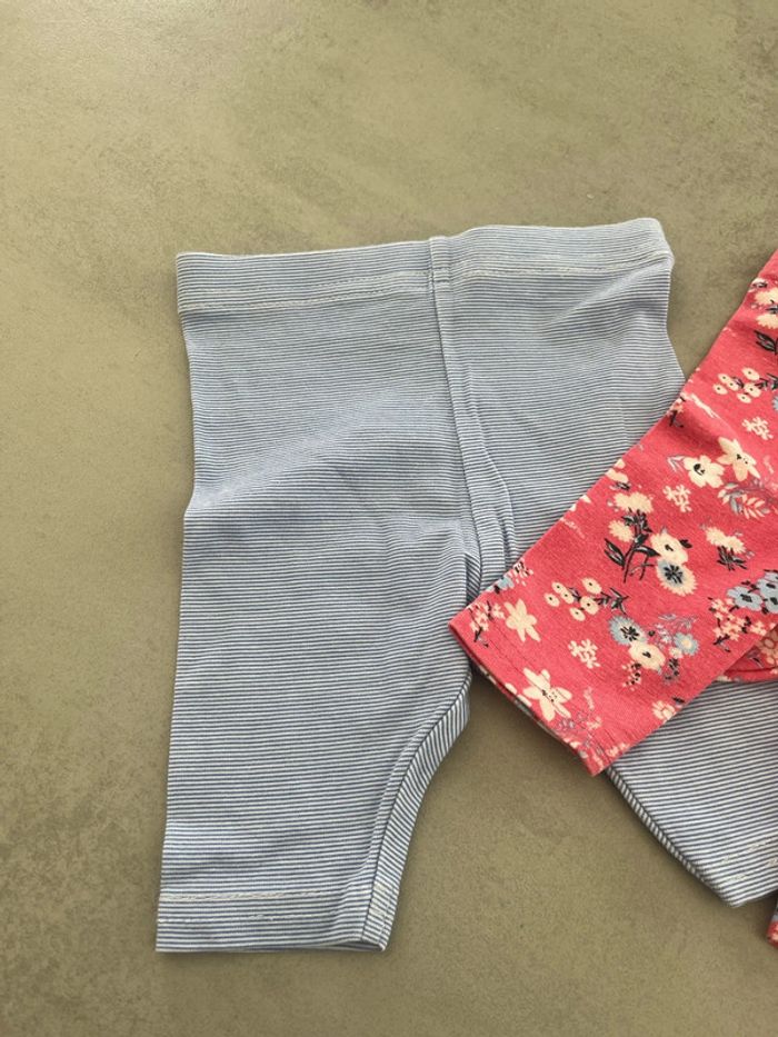 Lot de 2 leggings courts Rayé bleu clair et blanc Rose fleuris Primark 3/6mois 68cm Neuf
