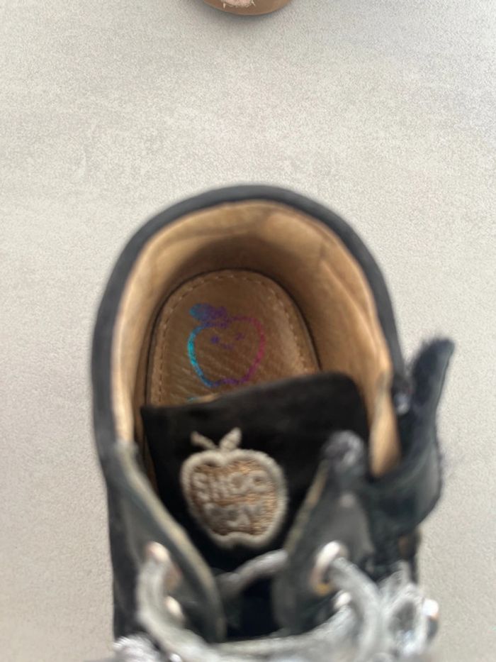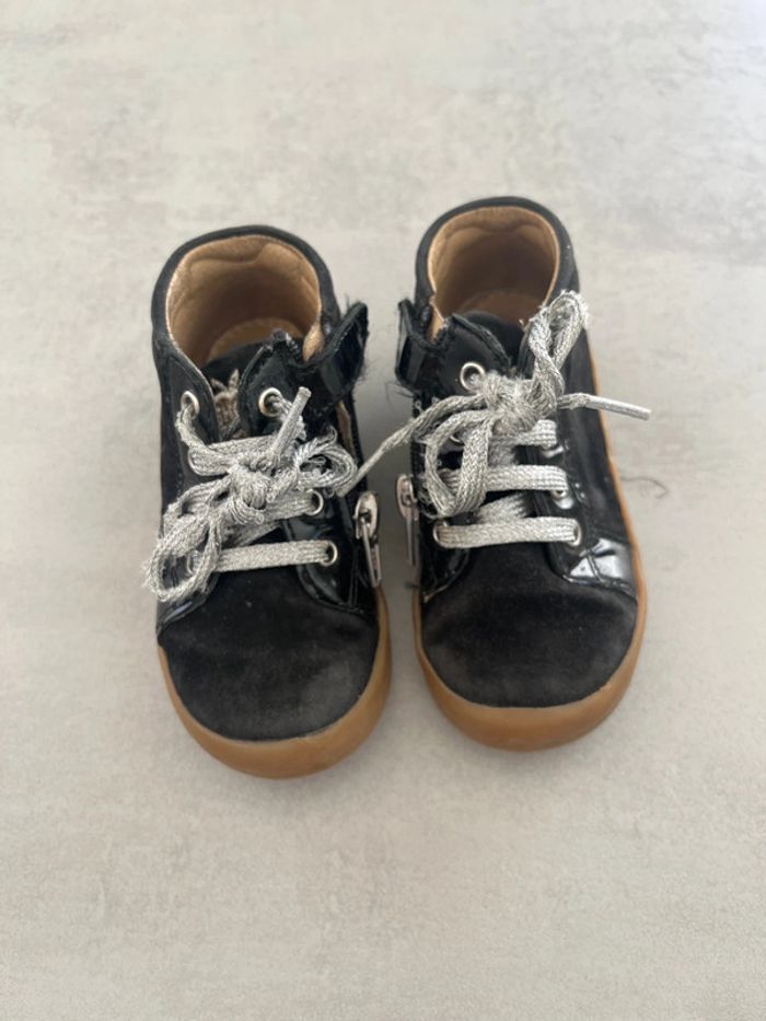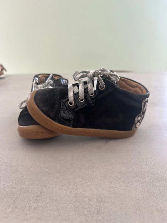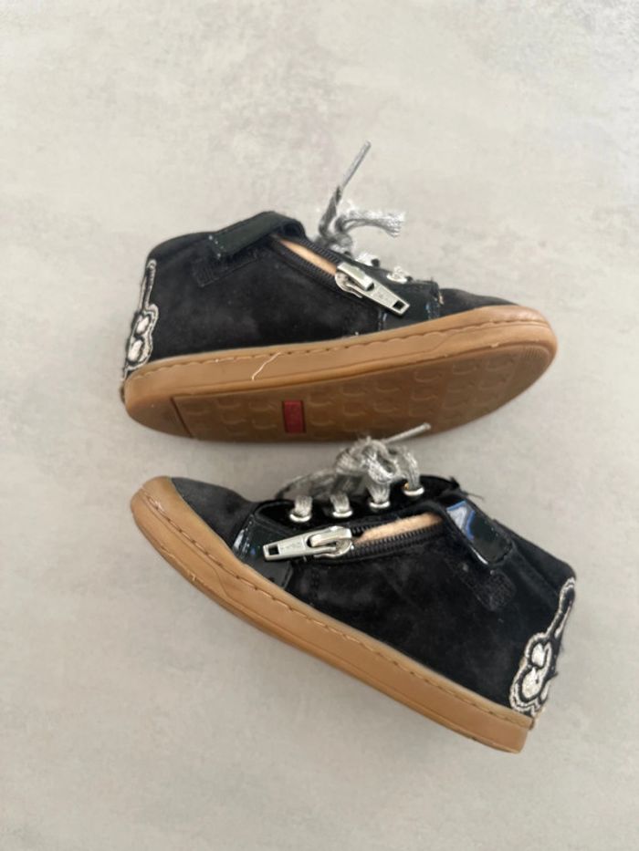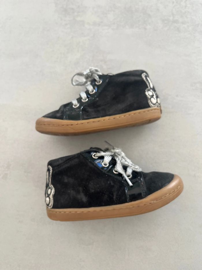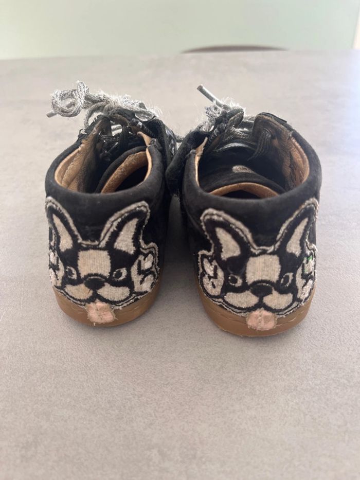 Basket noire à lacets argentés Motif bouledogue sûr le talon Taille 22 Excellent état juste les lacets sont usés