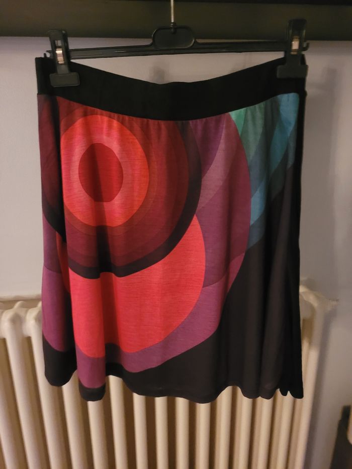 Jupe noir dessin cercles colorés Taille élastiquée Marque Desigual Dimensions à plat Taille : 40 cm Longueur : 54 cm Réductions activées sur les lots ↘️ ✅️ 🤑 #desigualsofi1804 #jupesofi1804 #taille40sofi1804