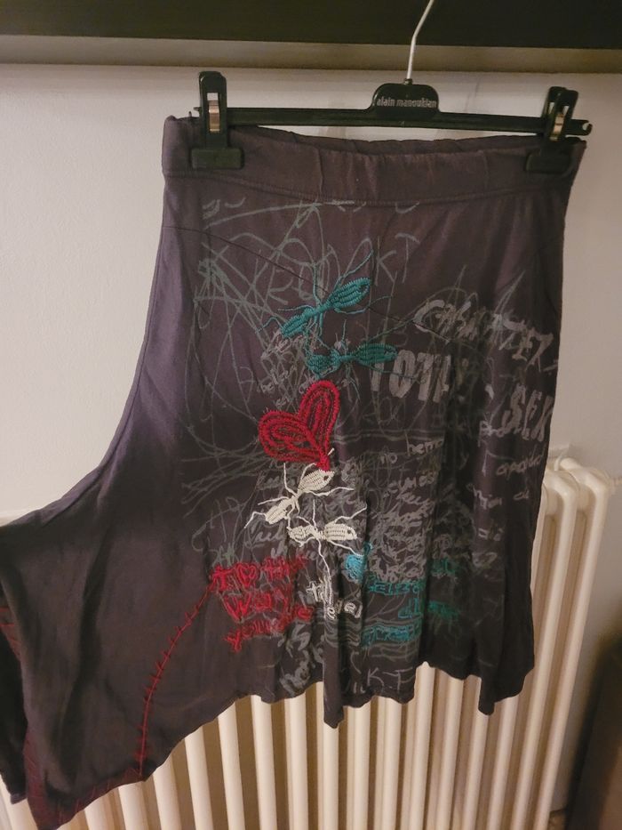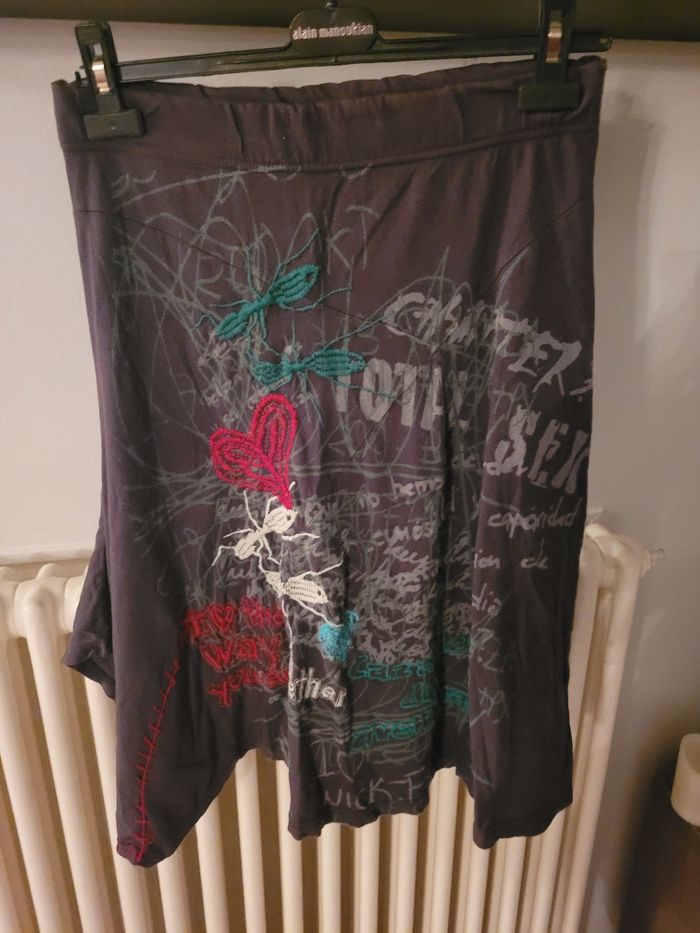 Jupe asymétrique marron gris Marque Desigual Taille L Taille élastiquée Pas d'étiquette de composition Dimensions à plat à la taille : 38 cm Longueur totale : 66 cm Réductions activées sur les lots ↘️ ✅️ 🤑 #desigualsofi1804 #taille40sofi1804 #jupesofi1804