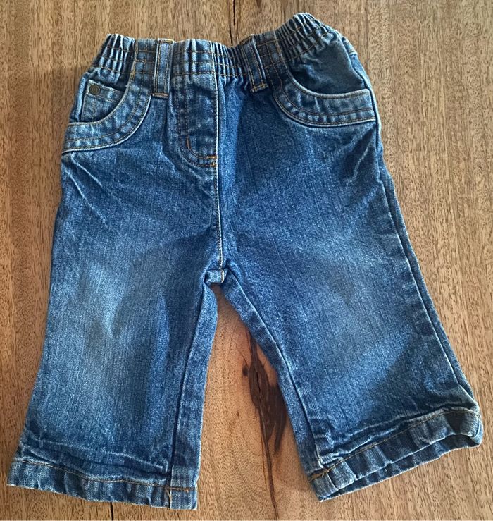 Jean bleu avec élastique à la taille Sans taches 100% coton 2 poche devant et deux poches avec 2 bouton aux fesses