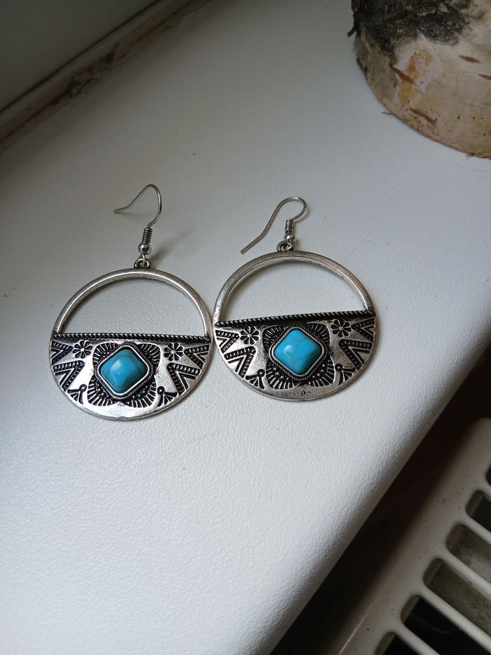 Boucles d'oreilles turquoise dans un cercle de 4 cm. Irréprochable